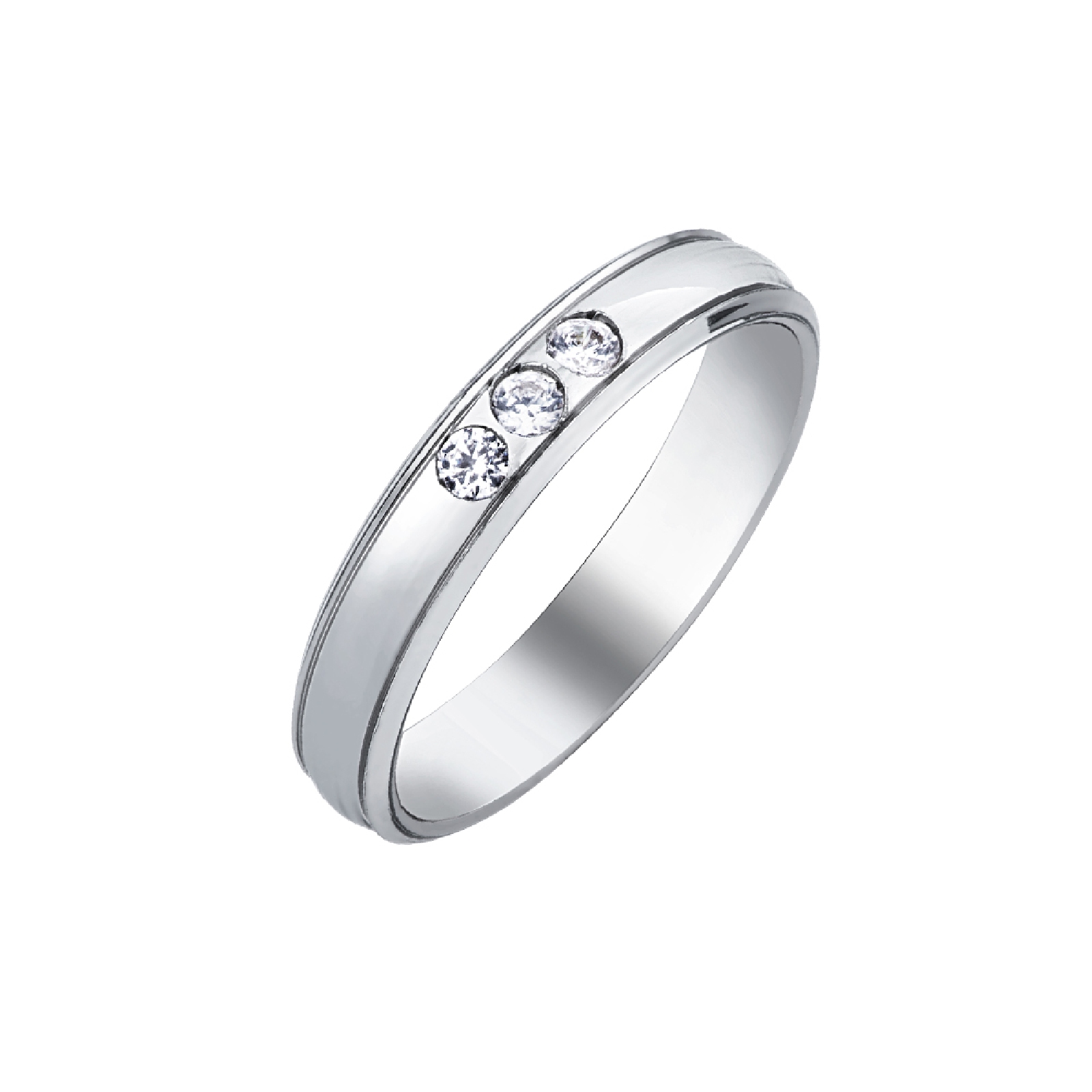 Alliance de mariage en or blanc 18k sublimée par trois diamants