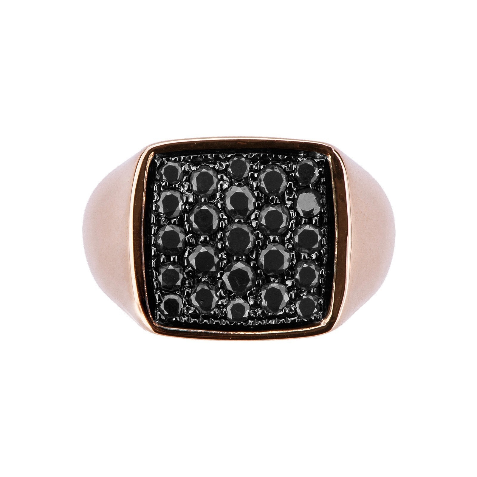 Bague homme pavé en or rose 18 carats rectangulaire en diamants noirs