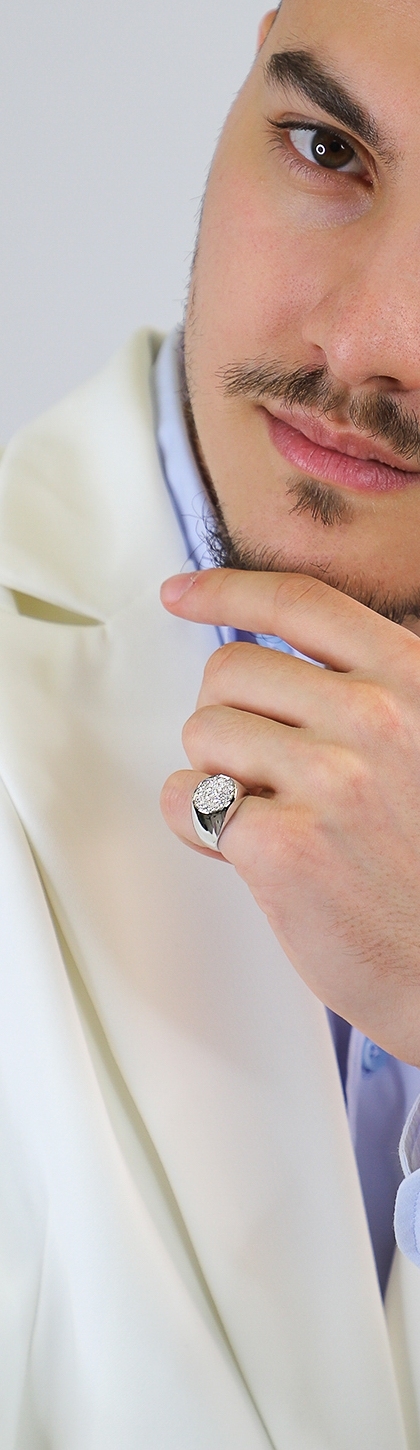 Chevalière homme ronde avec pavé diamants et or blanc 18k
