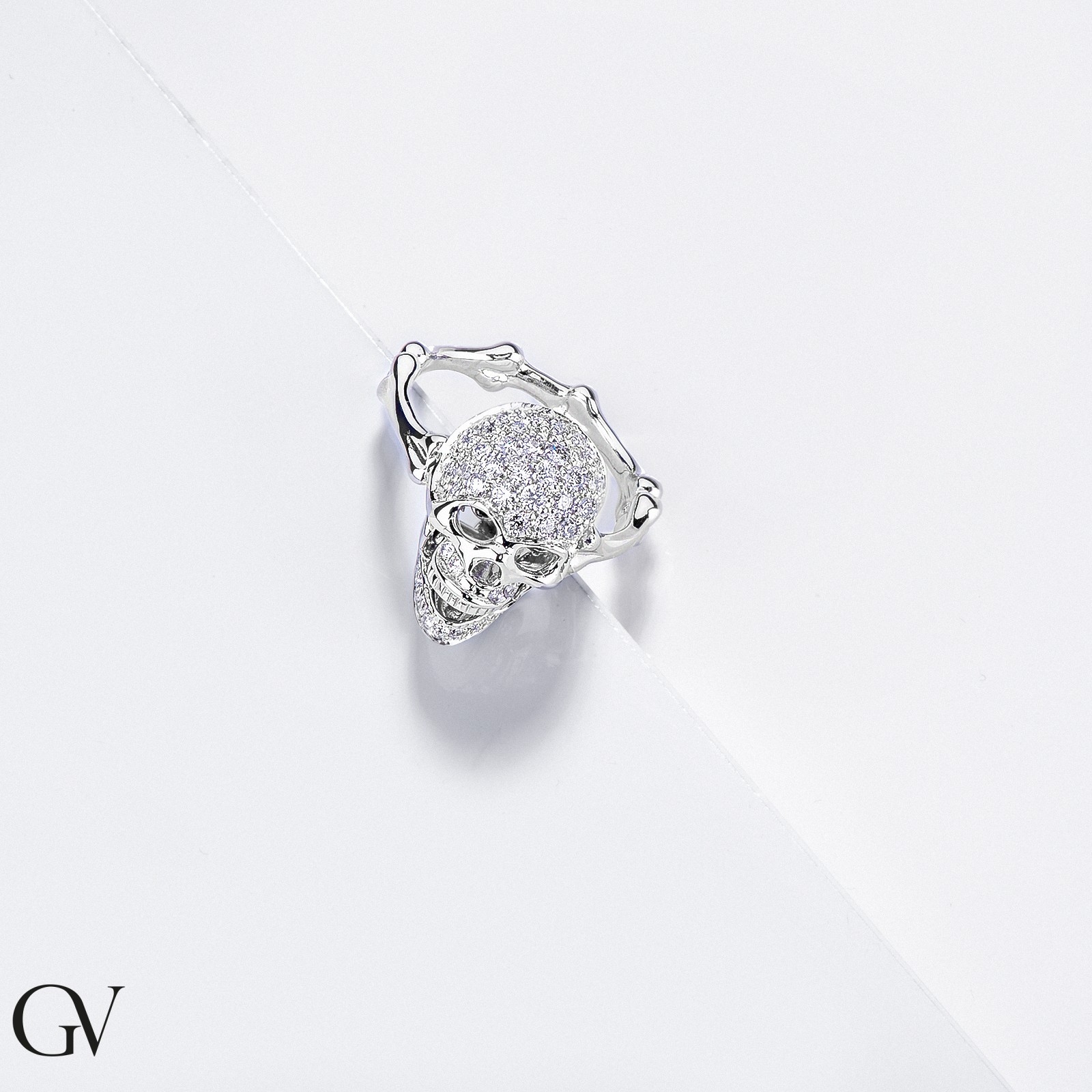 Bague tête de mort en or blanc 18K avec des diamants blancs et noirs