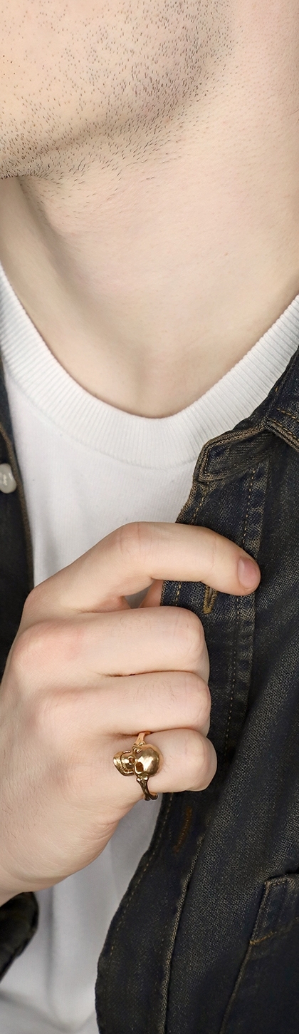 Bague tête de mort en or rose 18k et diamants