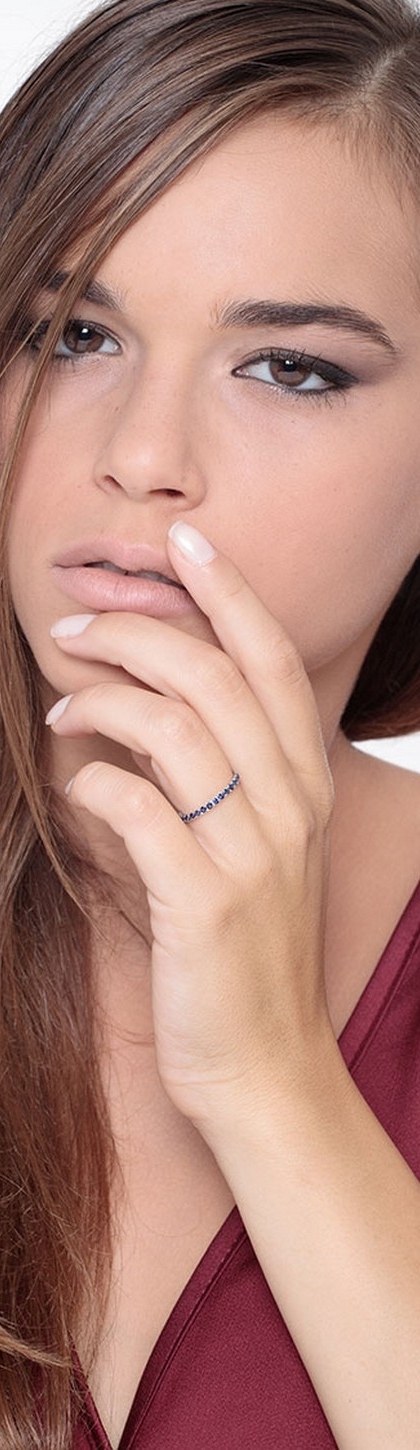 Bague d'éternité en or blanc 18k composée de saphirs bleus