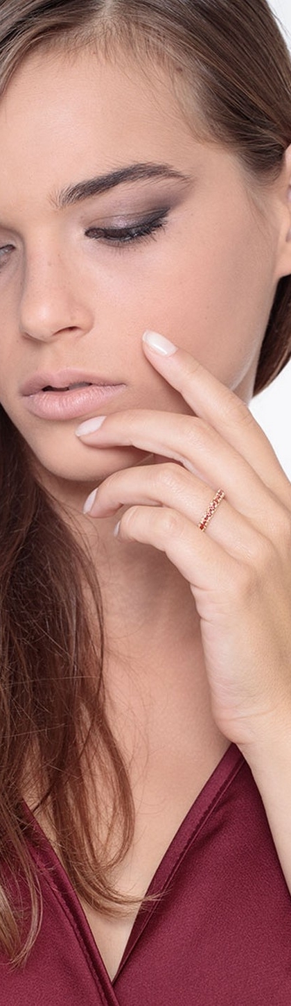 Les bagues Eternity font partie des accessoires les plus classiques et élégants. La caractéristique principale de ces modèles est le bracelet entièrement recouvert de pierres précieuses.