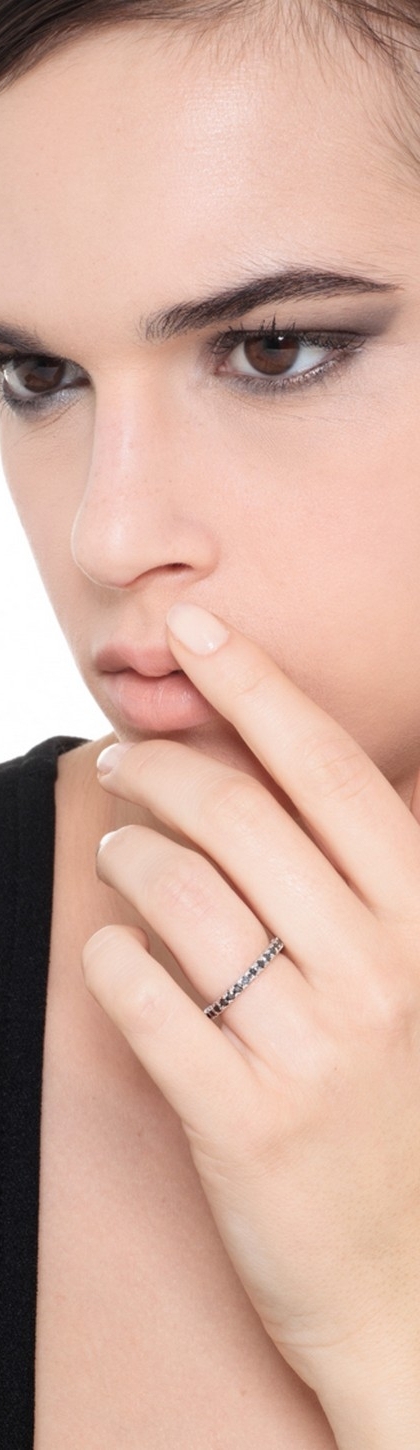 Bague Eternity à griffes en or blanc 18 carats avec diamants noirs