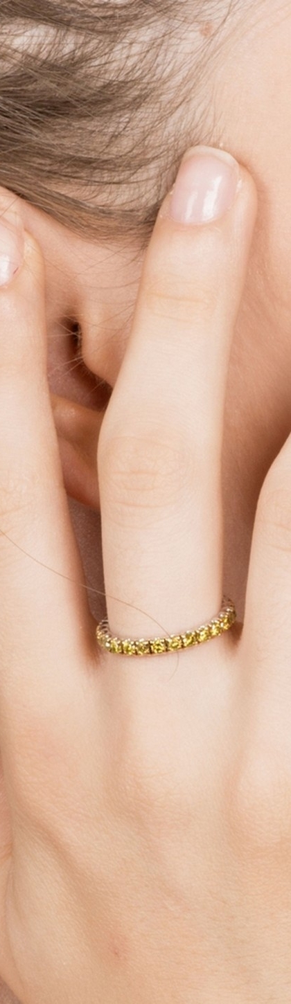 Bague Eternity en or blanc 18k avec diamants jaunes