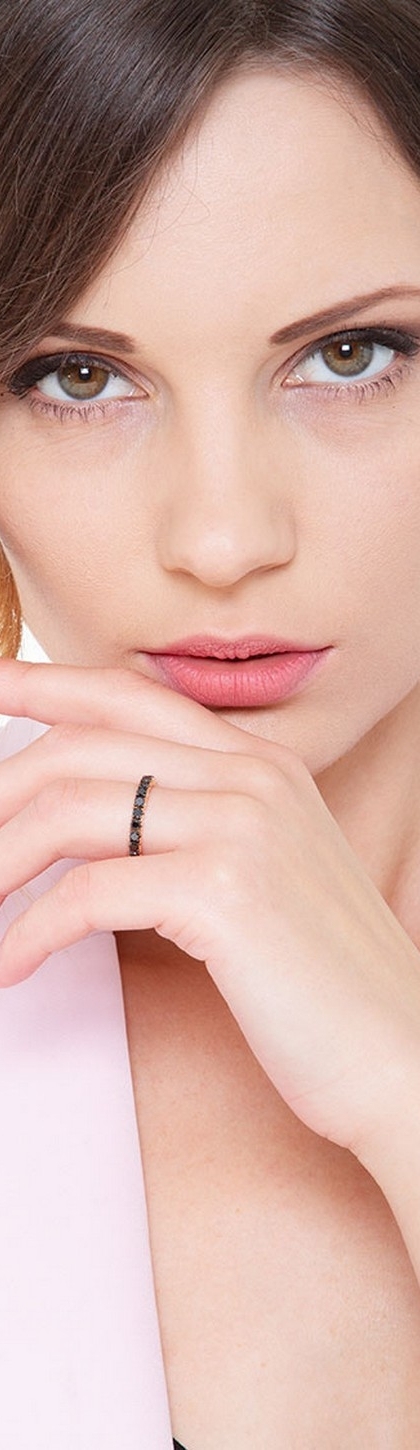 Bague Eternity en or rose 18 carats avec diamants noirs