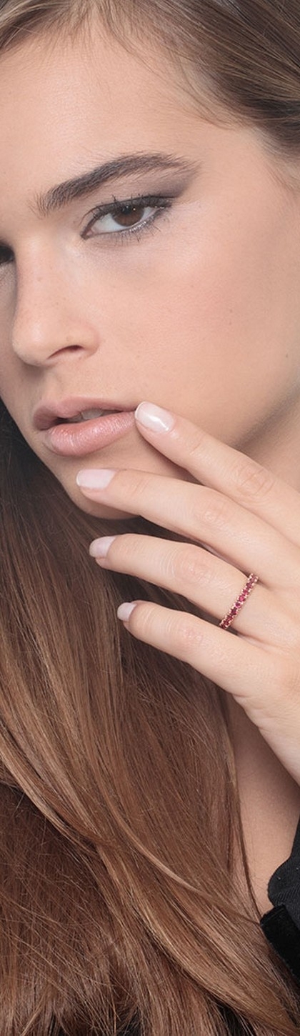 Bague Eternity en or rose 18k avec rubis