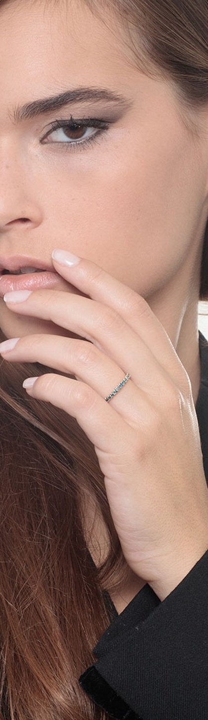 Bague Eternity griffes en or rose 18k avec diamants bleus