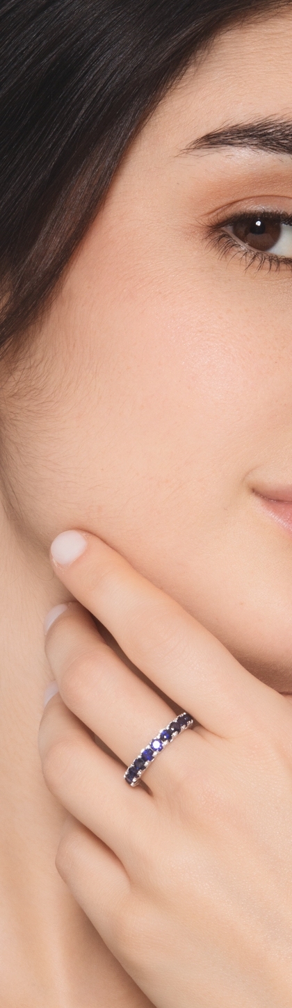 Bague Eternity or blanc 18k avec saphirs bleus