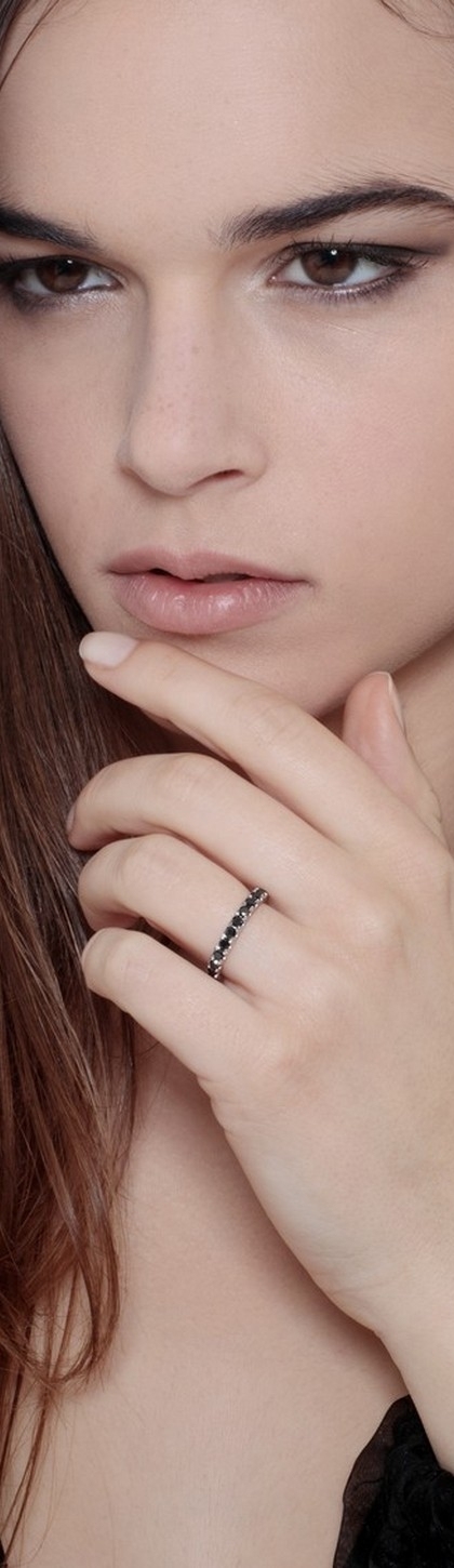 Bague homme Eternity à griffes en or blanc 18k sertie de diamants noirs