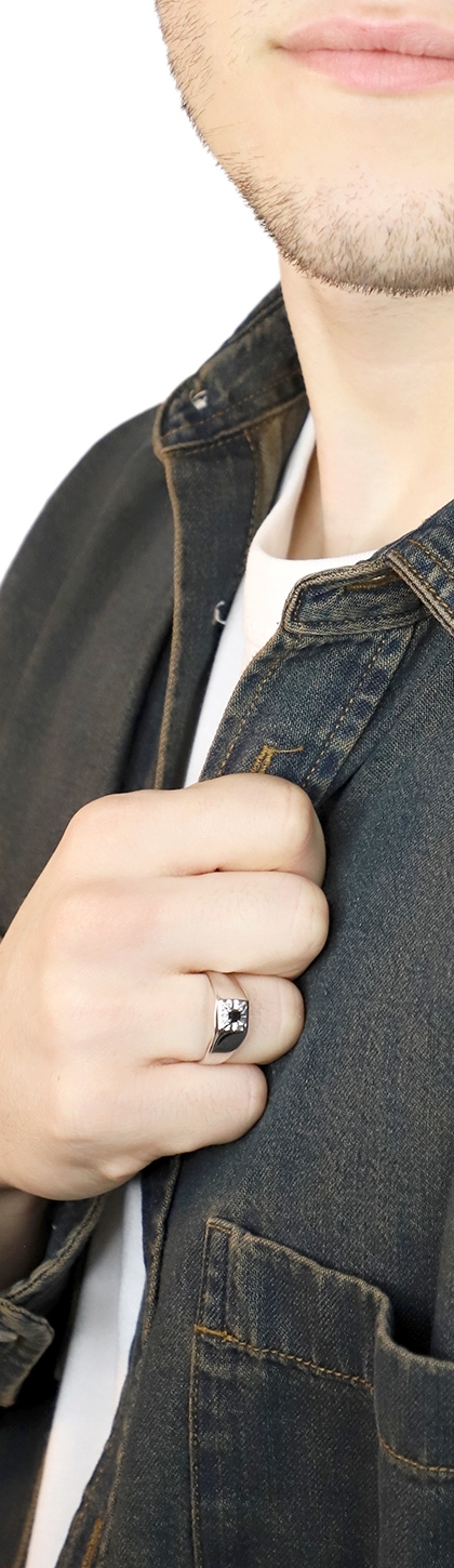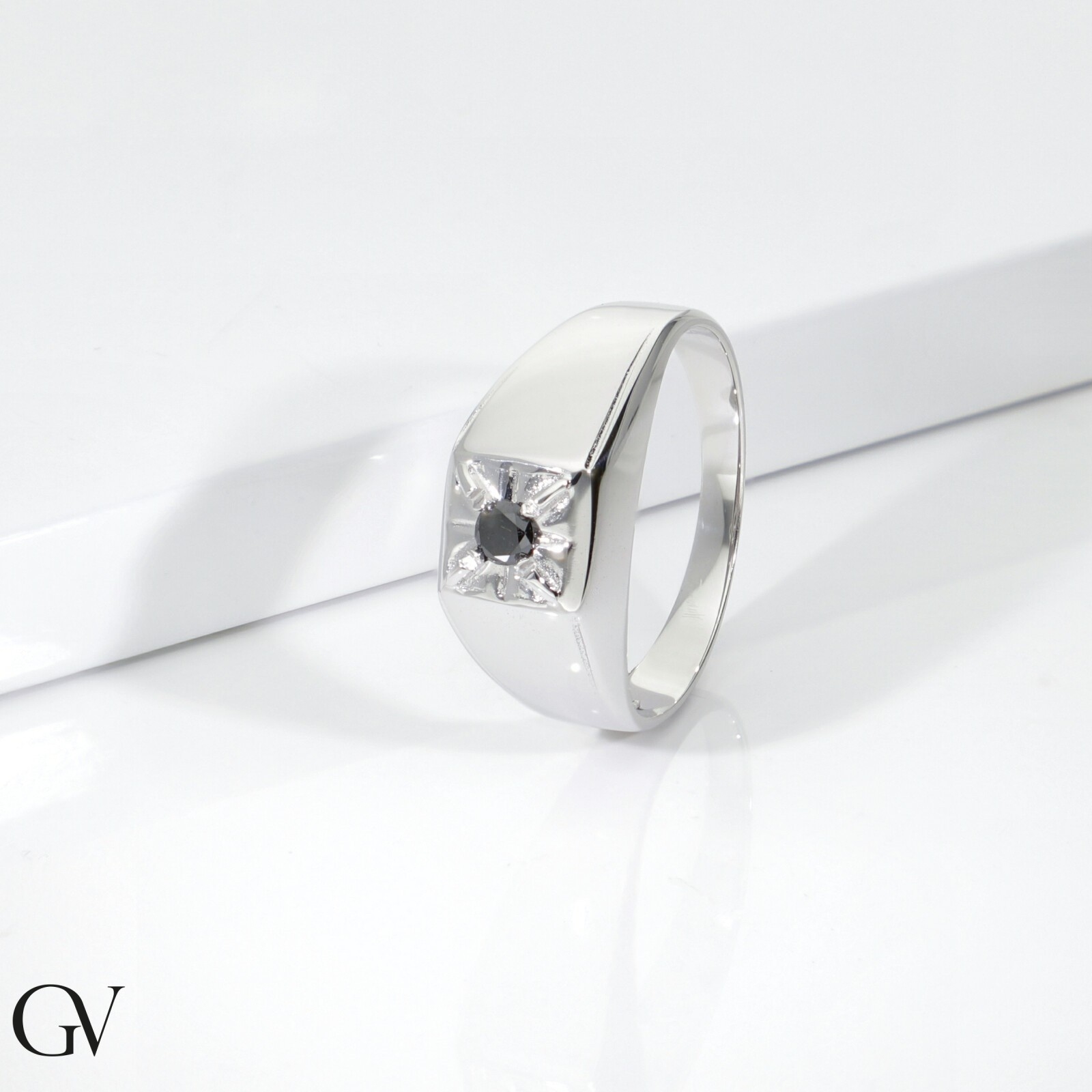 Anneau solitaire pour homme en or blanc 18k diamant noir