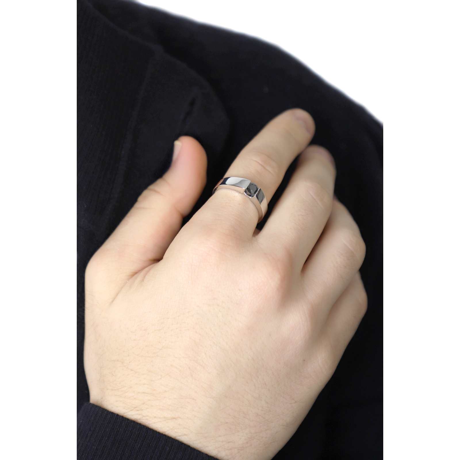 Bague Solitaire Homme en Or Blanc 750 avec Diamant Noir 0.45 ct
