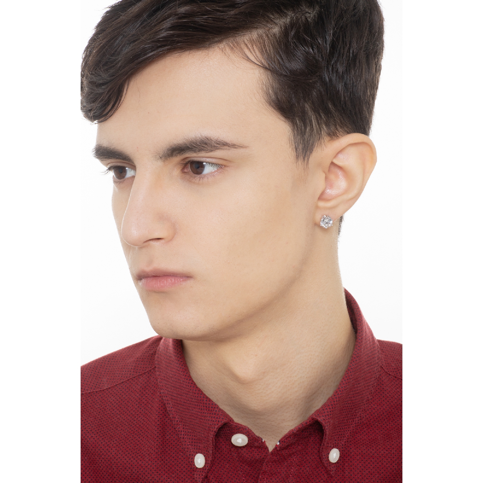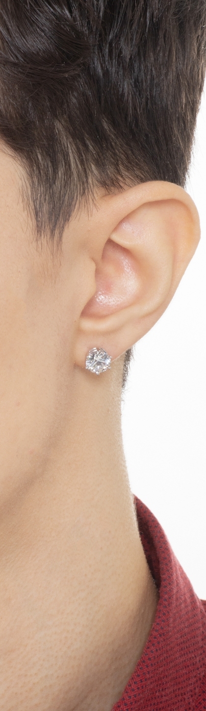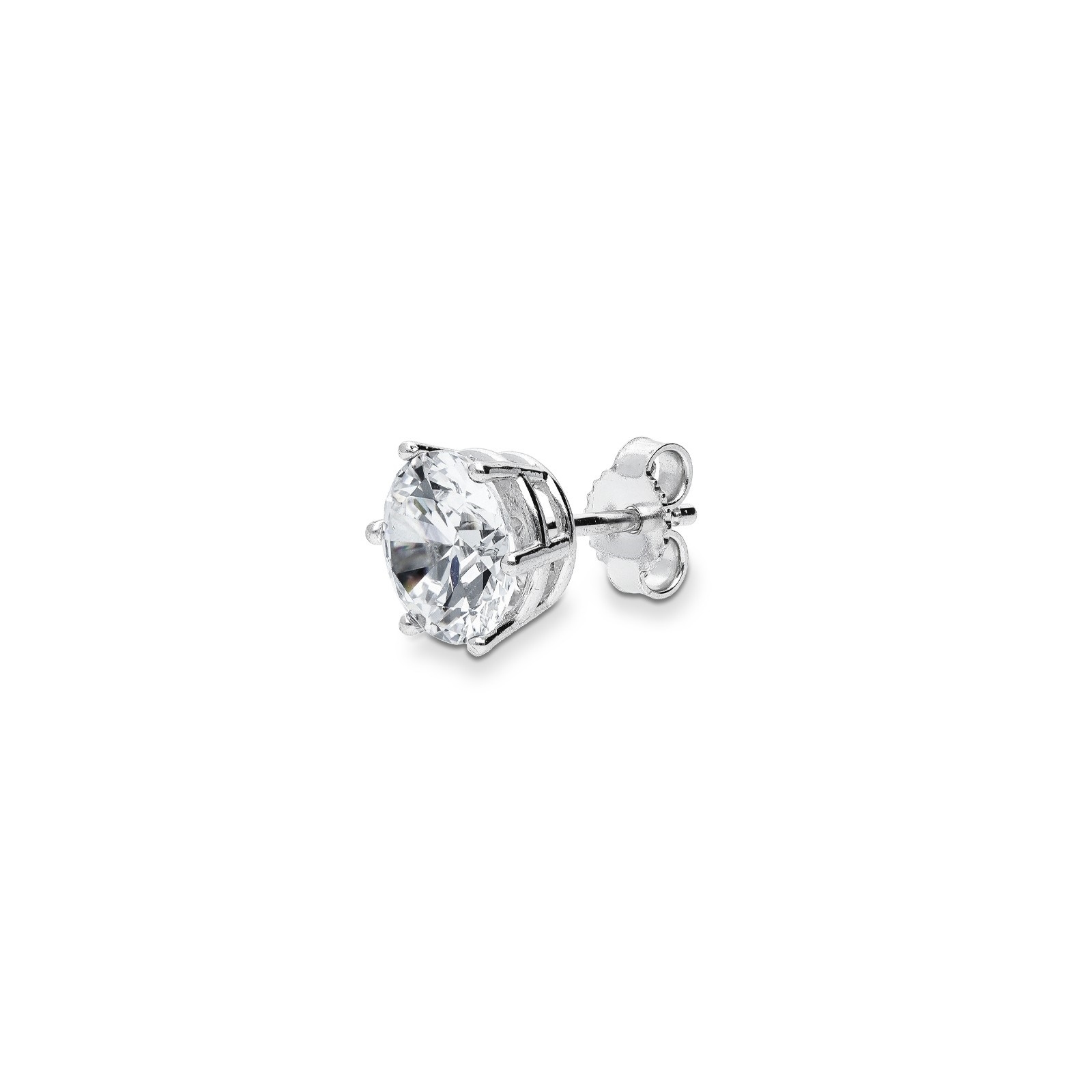 Mono boucle d’oreille solitaire en or blanc 18k avec zircon 8 mm.