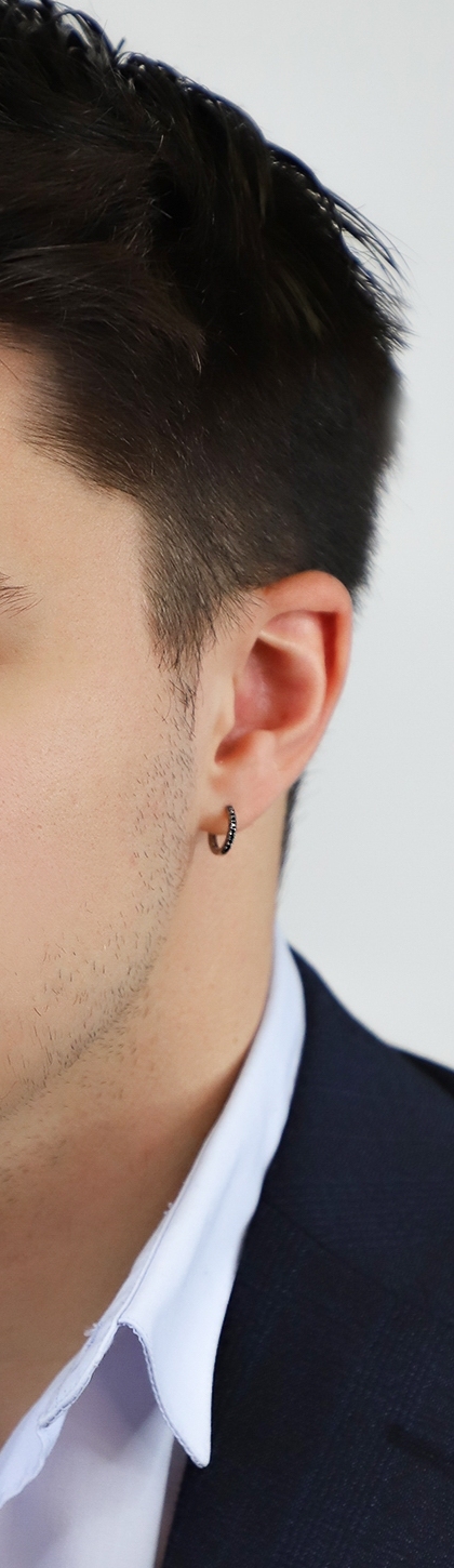 Créole mono homme en or blanc 18 carats avec diamants noirs