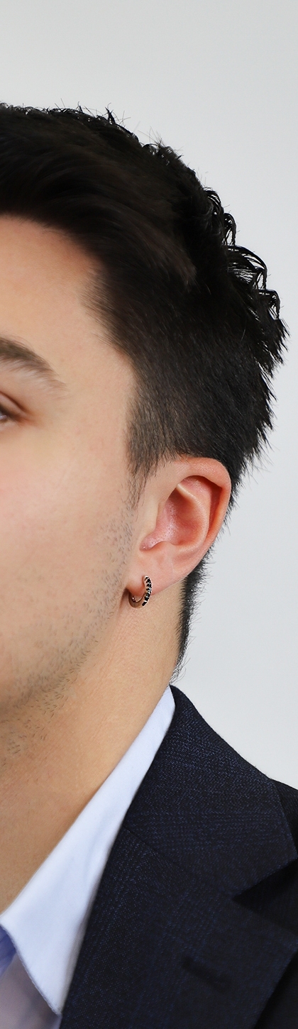 Mono boucle d'oreille créoles en or blanc 18 k et diamants noirs