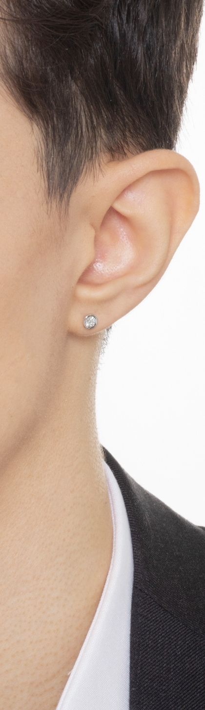 Boucle d'oreille homme mono en or blanc 18k avec diamant