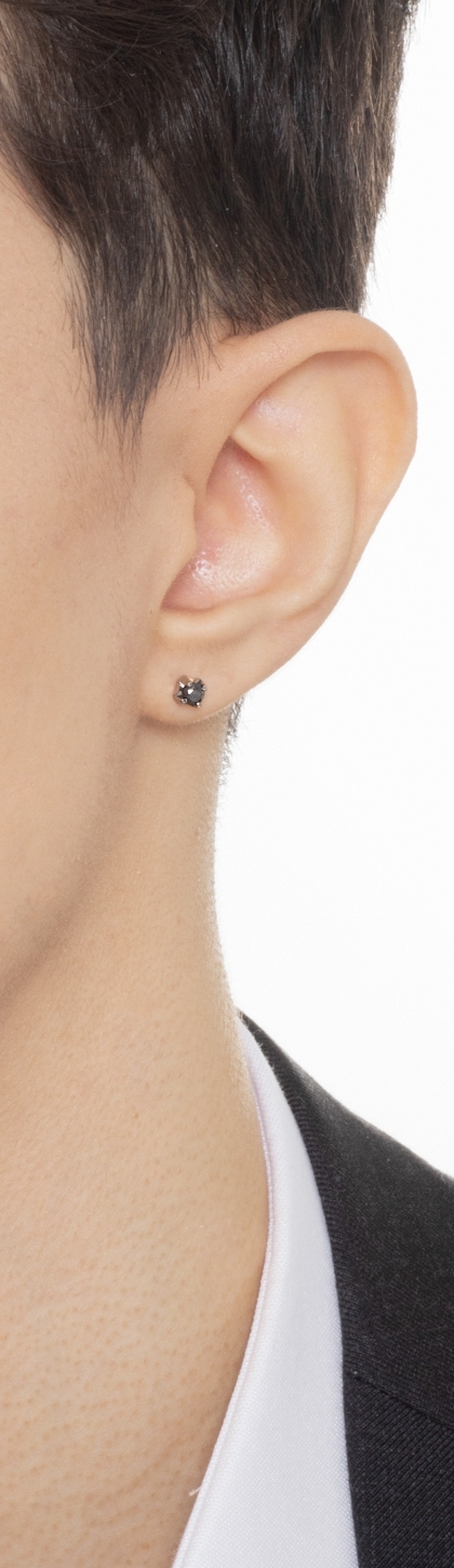 Boucle d'oreille mono en or blanc 18 carats à 4 griffes avec diamant noir 0,18 ct