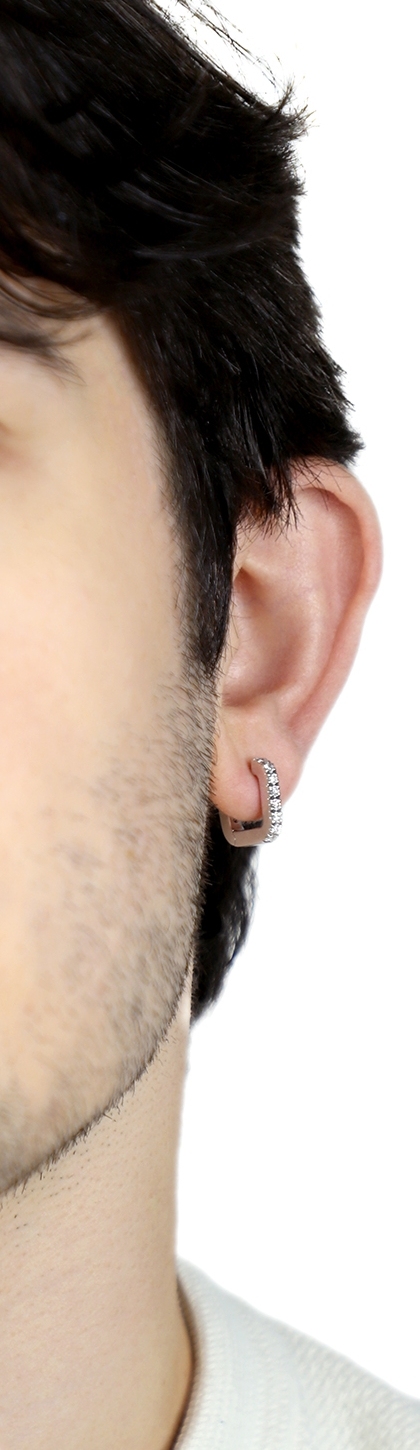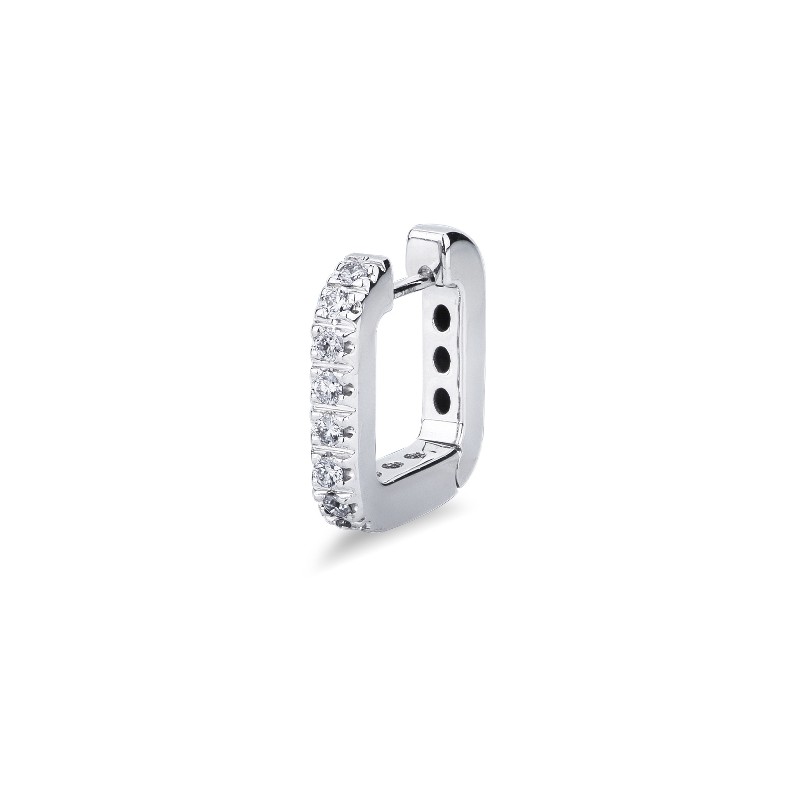 Boucle d’oreille unique rectangulaire en or blanc 18k diamants