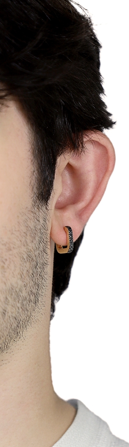 Mono boucle d’oreille en or jaune 18ct diamants noirs