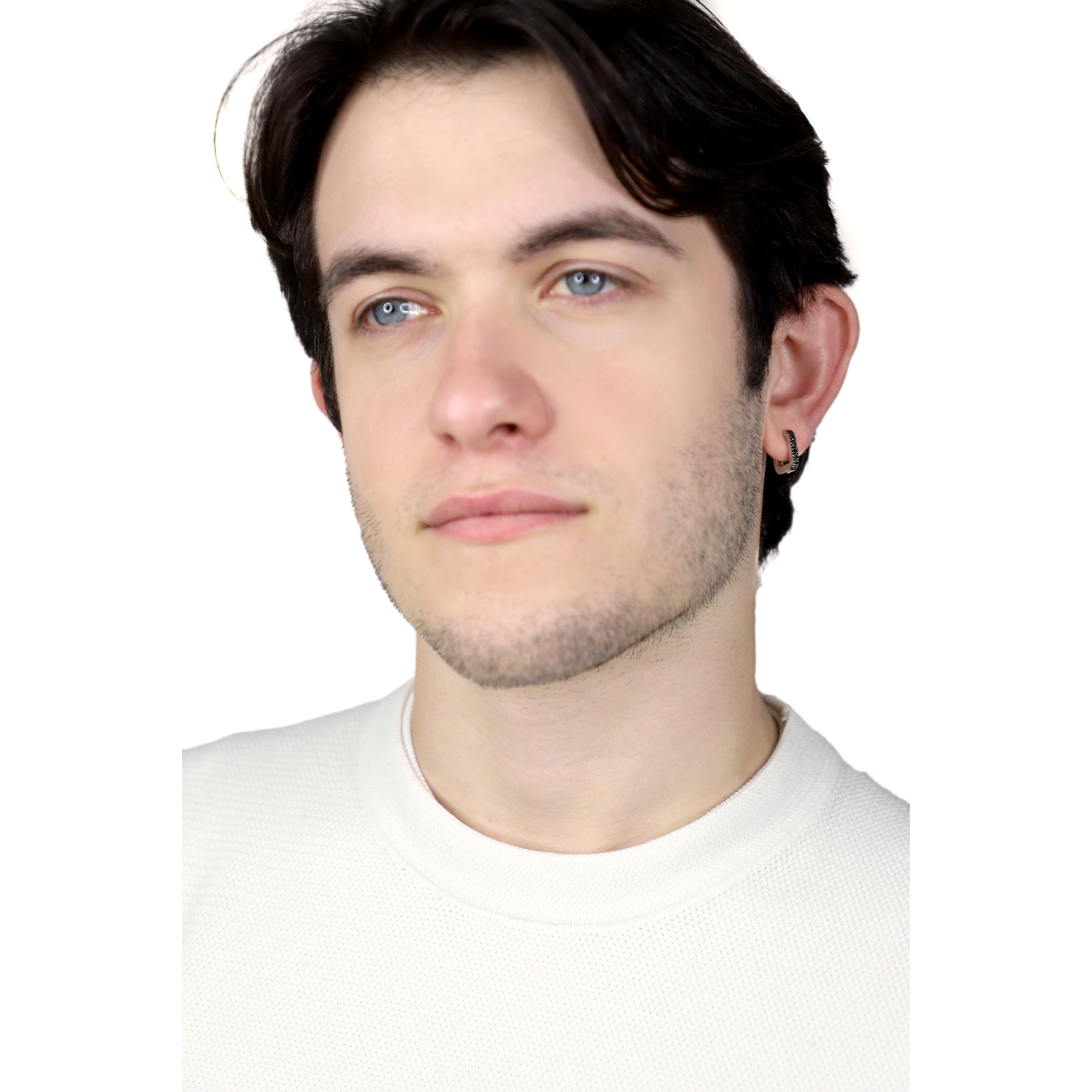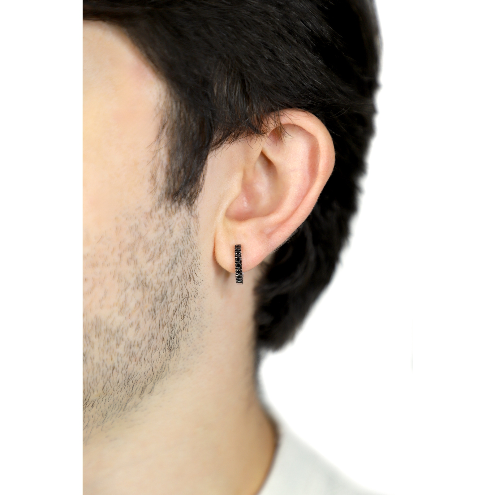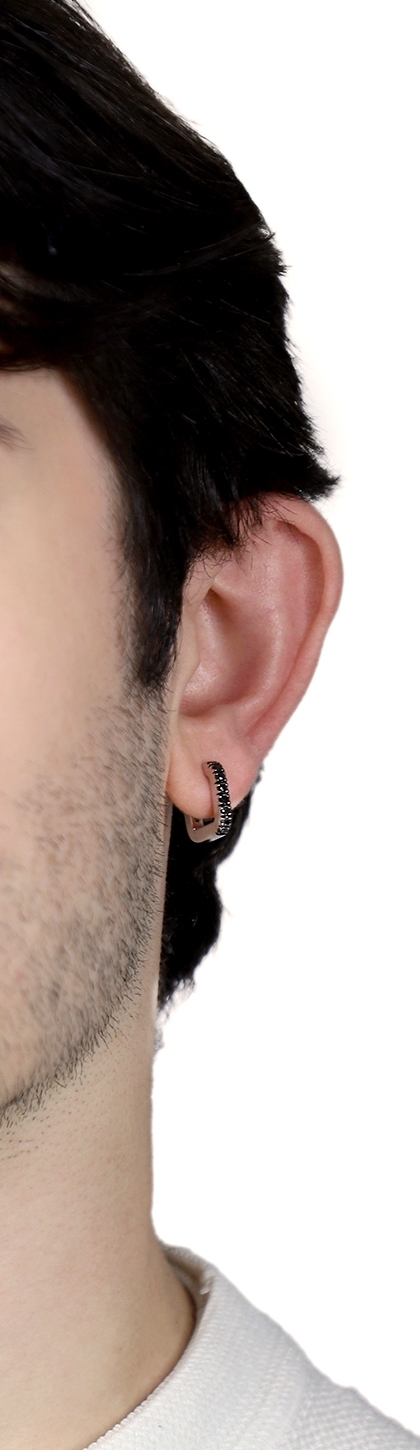 Mono boucle d’oreille rectangulaire en or blanc 18ct diamants noirs