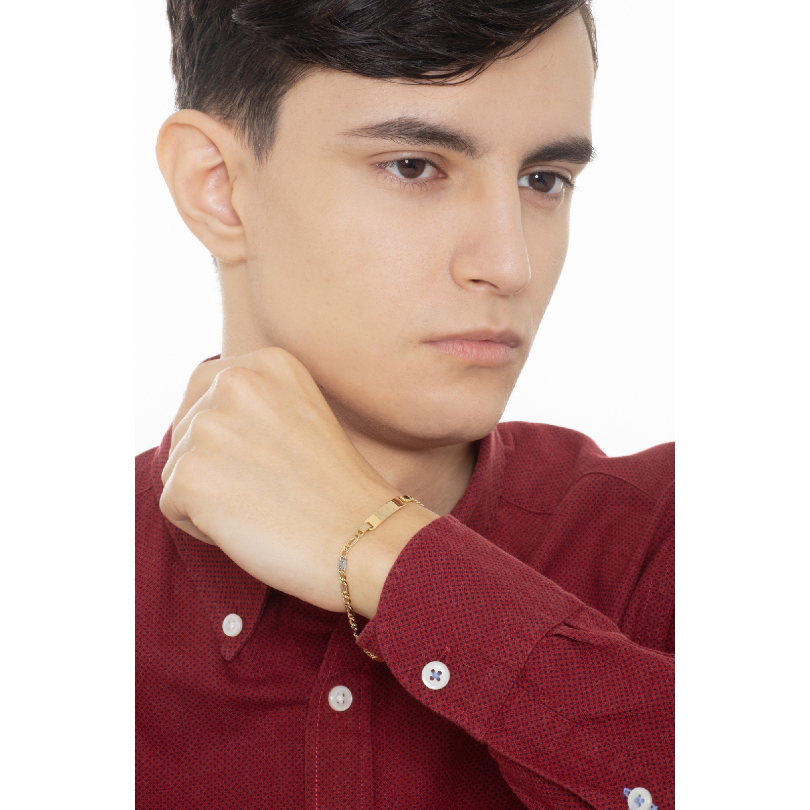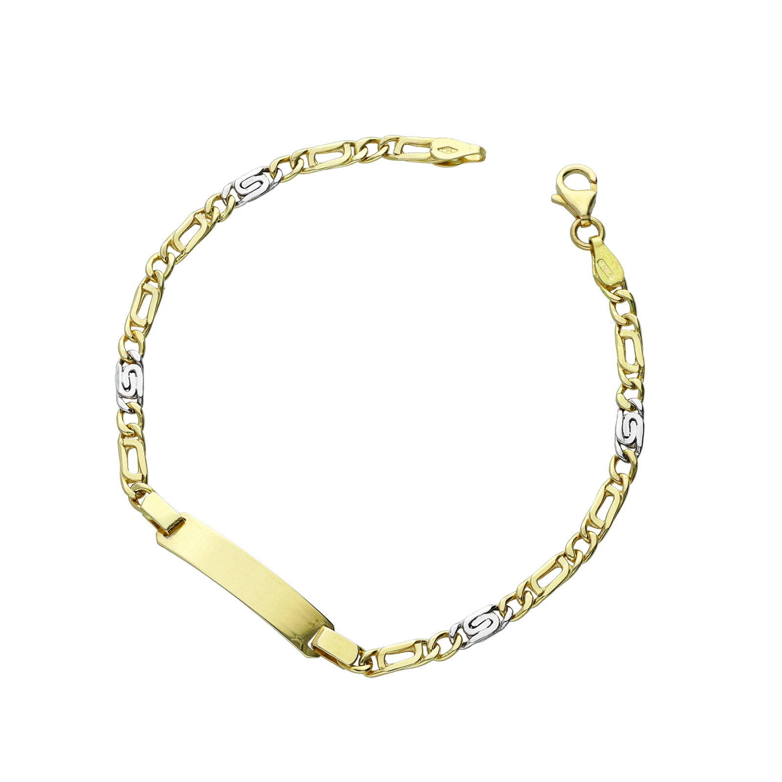 Bracelet en or jaune et blanc 18 carats avec plaque personnalisable. Le bracelet mesure 18,5 cm.