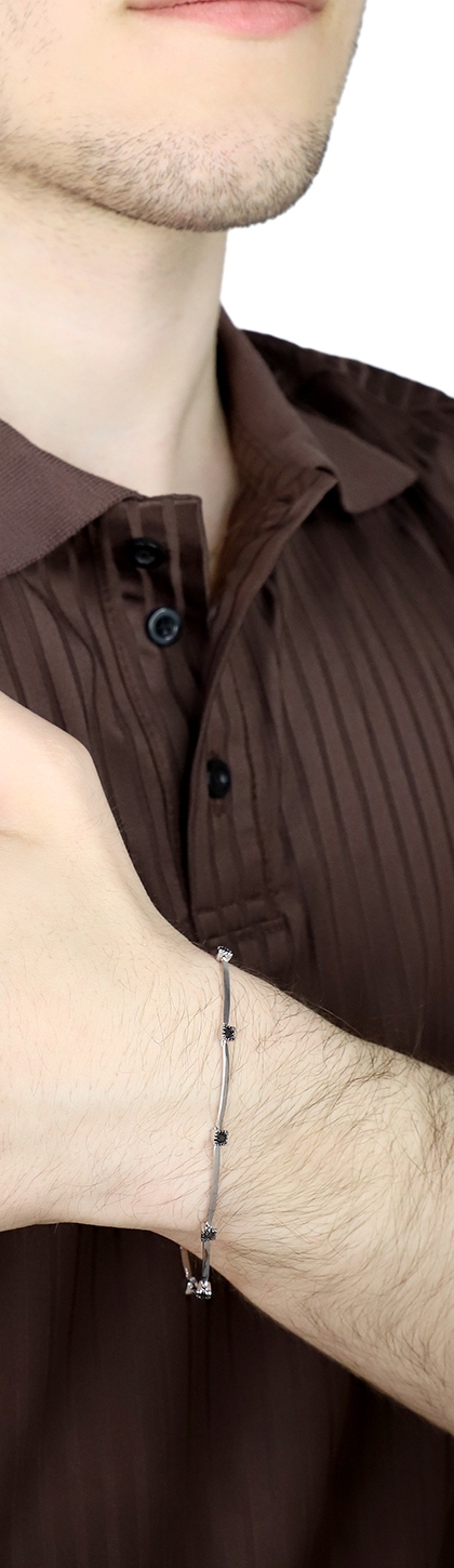 Bracelet alterné homme en or blanc 18 carats avec diamants noirs cm 20