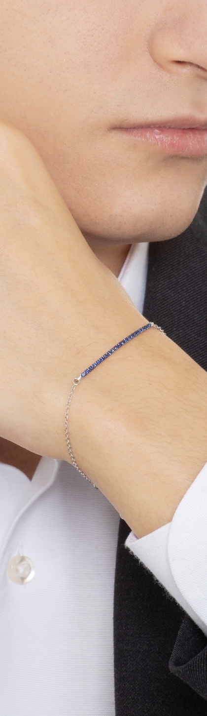 Bracelet barrette à griffes brunies avec saphirs bleu et or blanc 18k homme