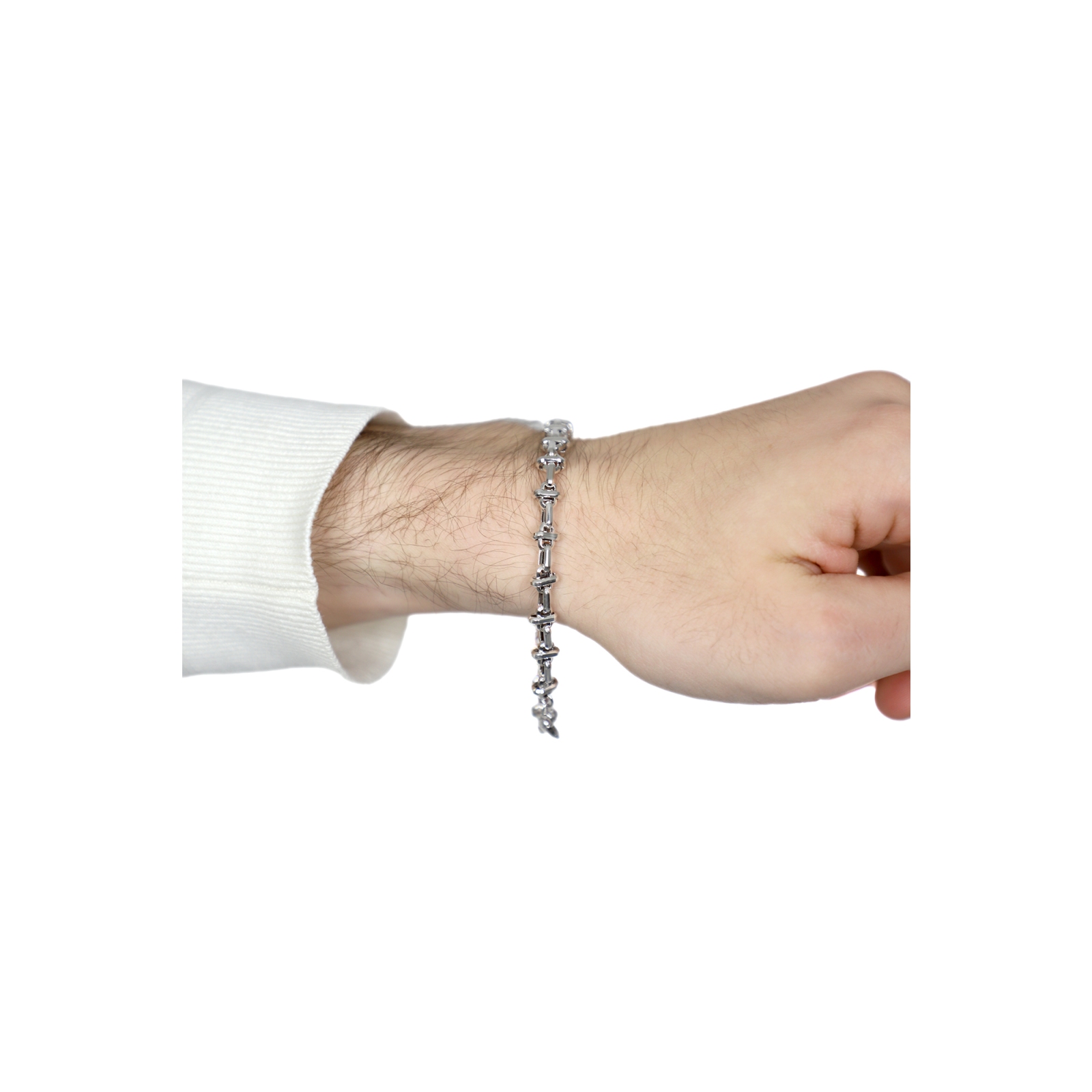 Bracelet homme en or blanc 18k avec design fantaisie, 21 cm. Un accessoire moderne et élégant, idéal pour un usage quotidien ou les occasions spéciales.