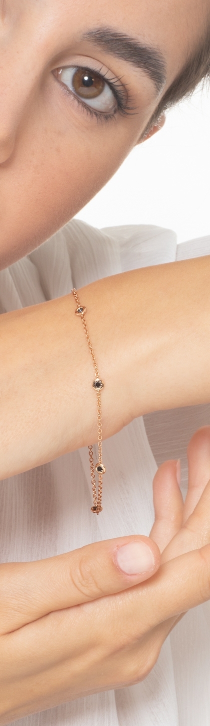 Bracelet en or rose 18k avec diamants noirs