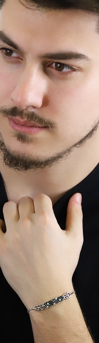 Bracelet pour homme en or bruni 18k avec 5 diamants noirs