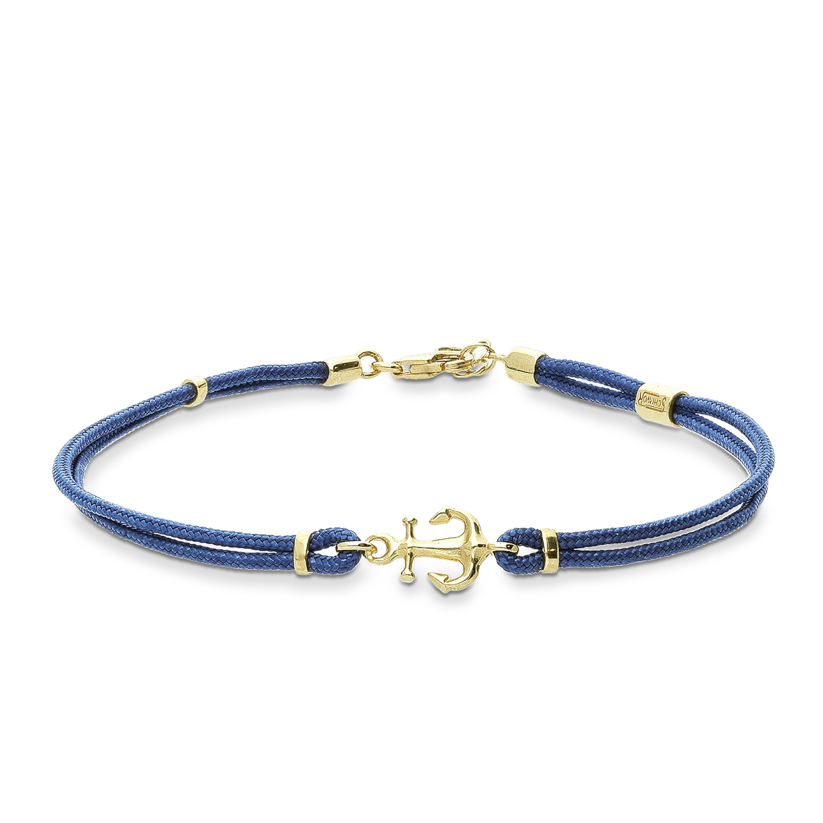 Bracelet en corde bleu avec ancre en or jaune 18k
