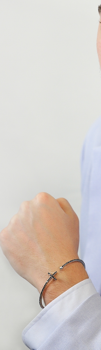 Bracelet en or blanc 18 carats avec croix en diamants noirs