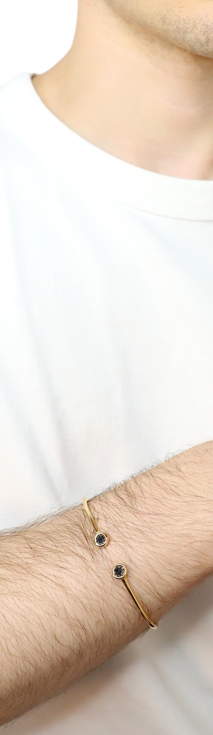 Bracelet Jonc en Or Rose 18 Carats avec Diamants Noirs