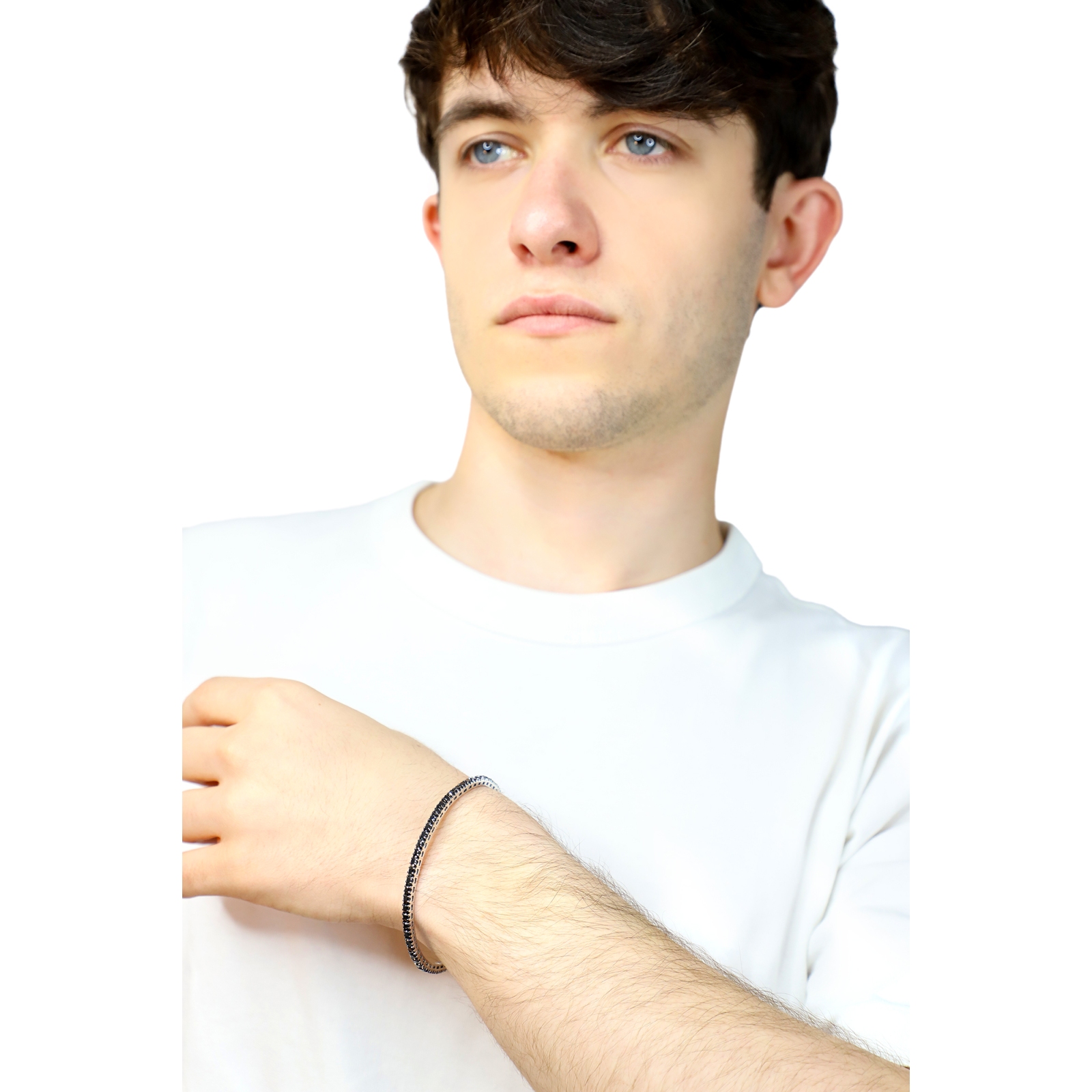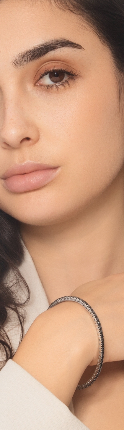 Bracelet elastique en or blanc 18k avec diamants noirs