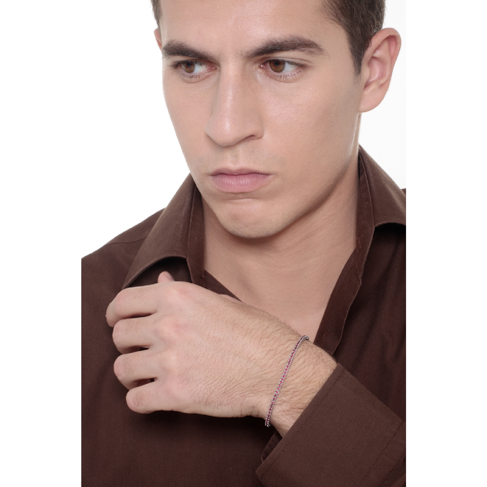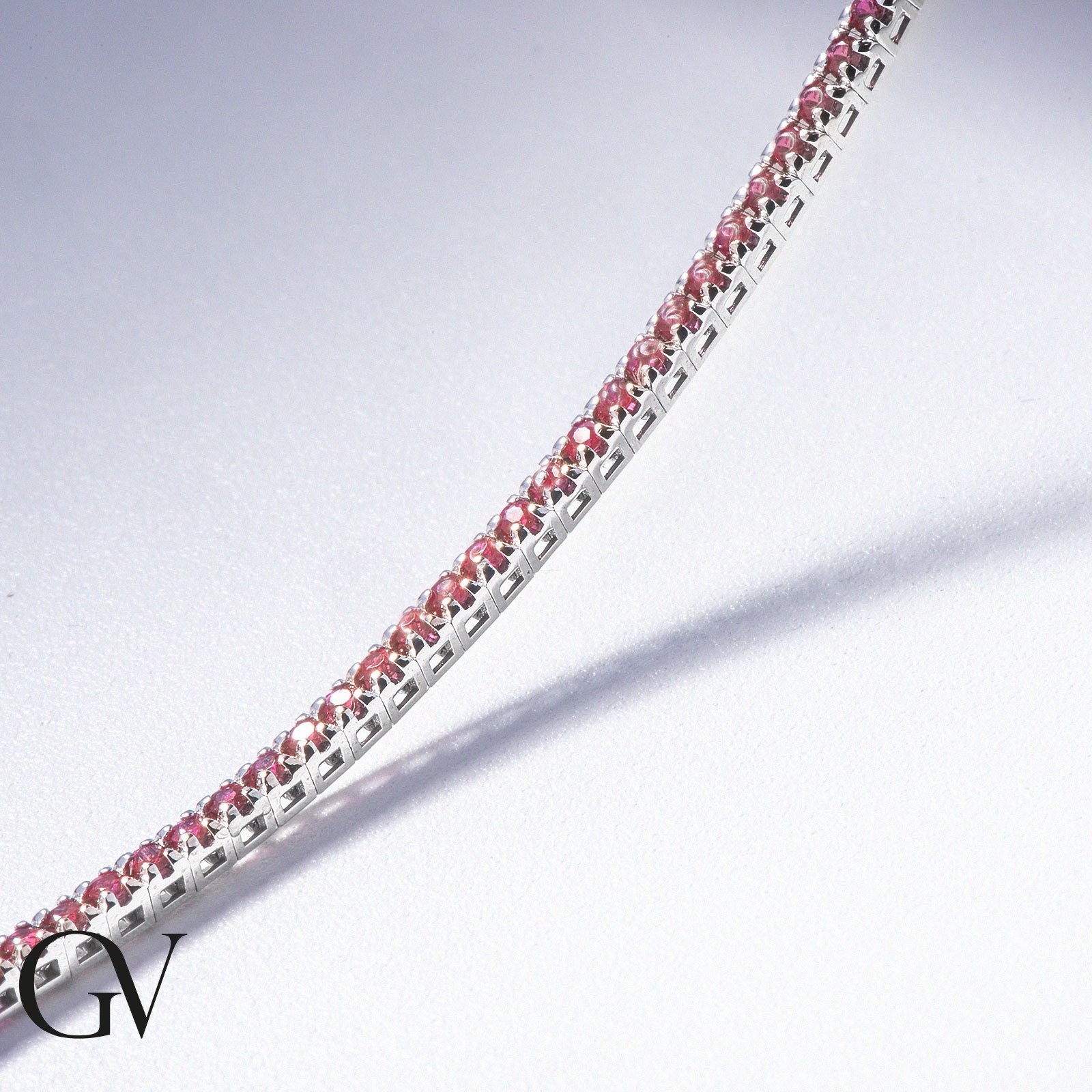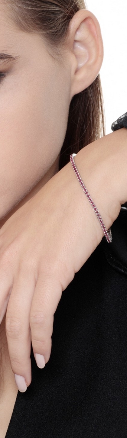 Bracelet Tennis à griffes en or blanc 18 carats avec des rubis taille brillant sertis. Le caratage peut varier en fonction de la taille du bracelet. Largeur du maillon environ 2,3 mm