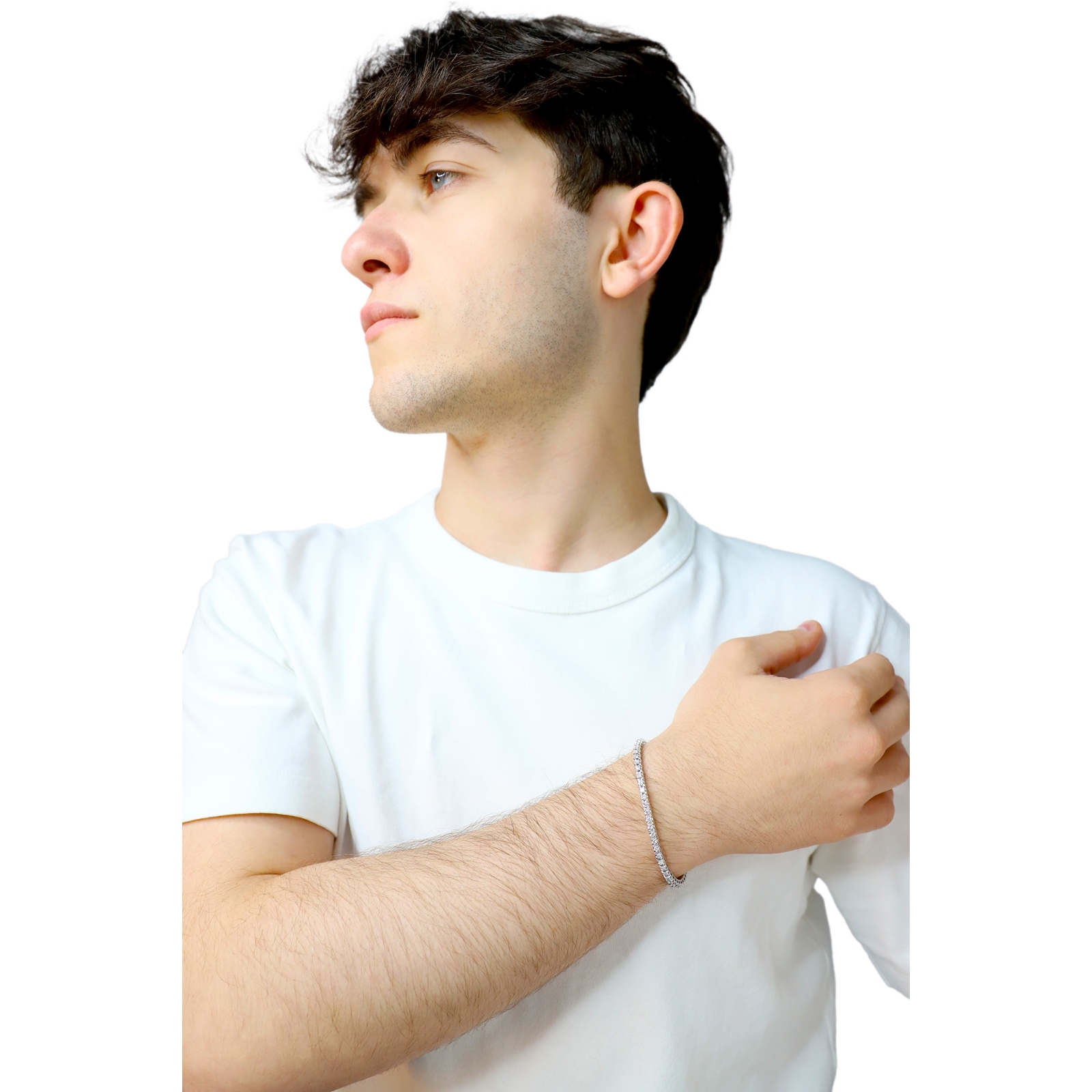 Bracelet tennis elastique en or blanc 750 avec diamants taille brillant couleur H purete VS. La largeur du maillon est d environ 3.20 mm.