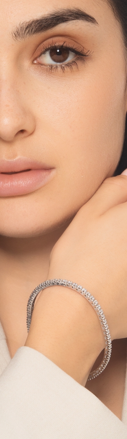 Bracelet tennis elastique en or blanc 750 avec diamants