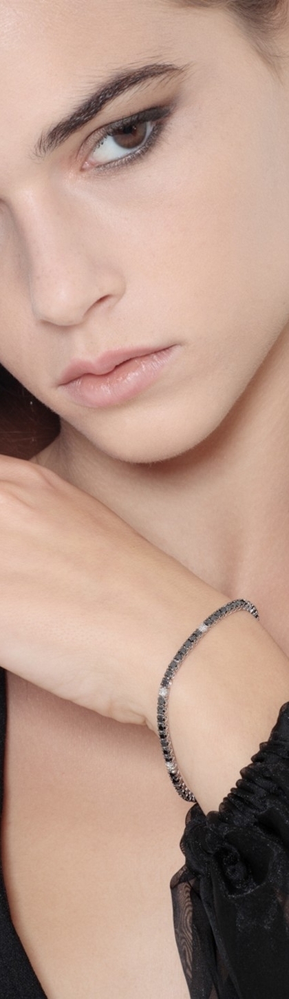 Bracelet Tennis en Or 18k avec Diamants Noirs et Blancs