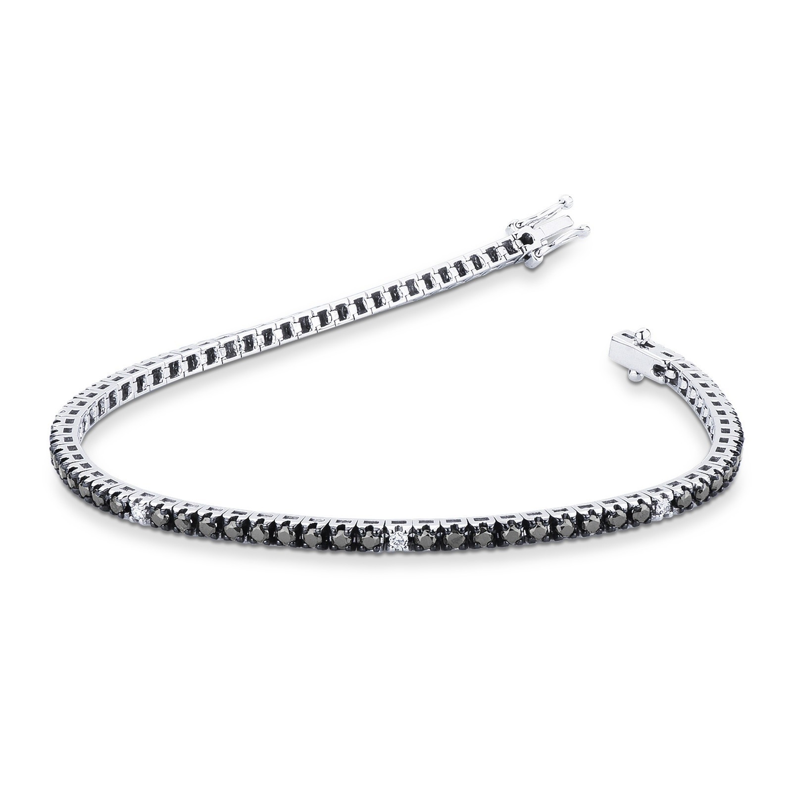 Bracelet tennis en or blanc 18 carats avec diamants noirs et blancs et griffes brunies