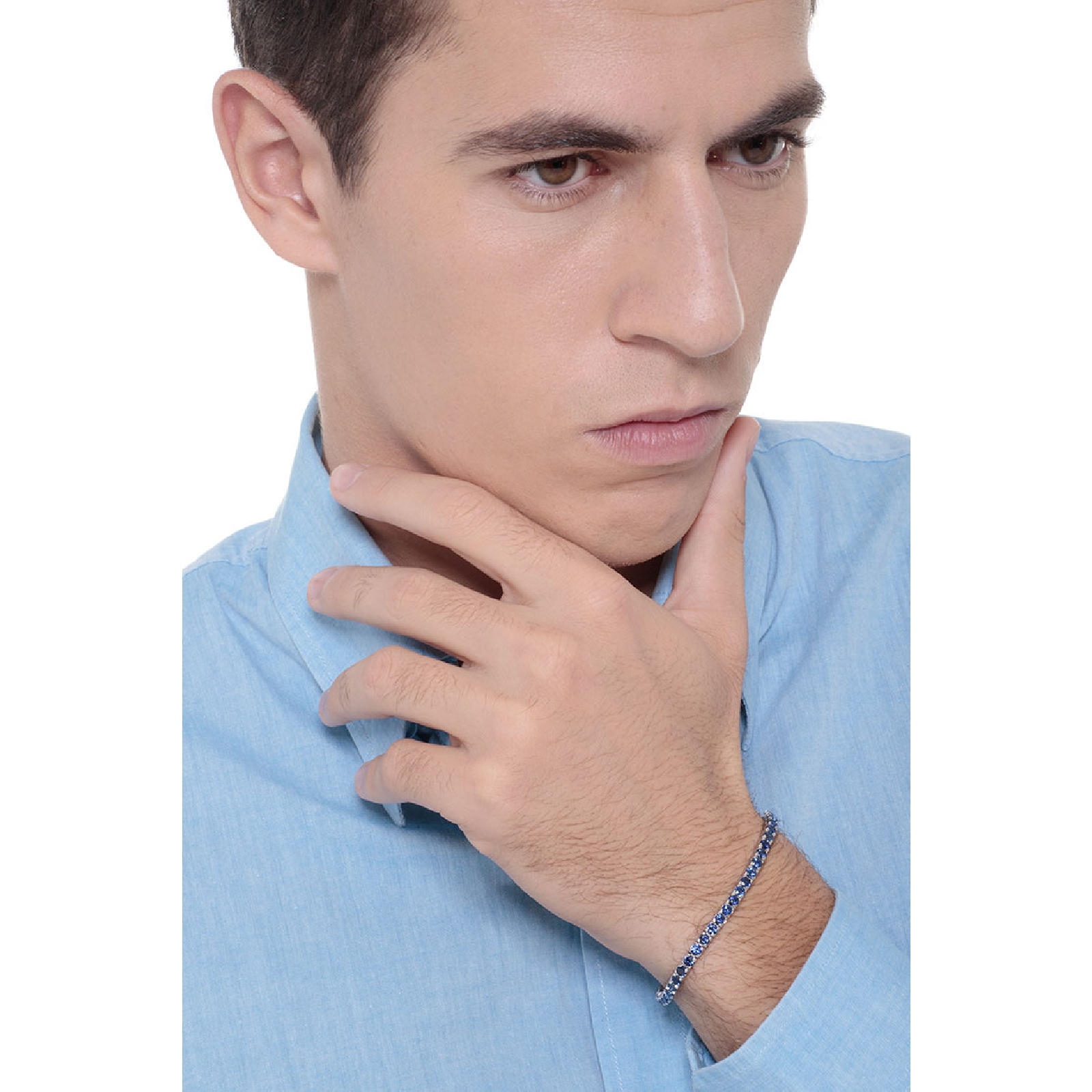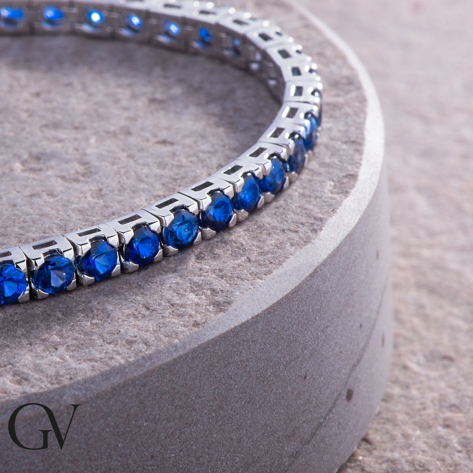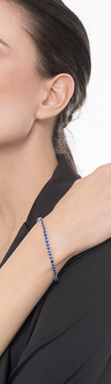 Bracelet tennis en or blanc 18k avec saphir bleu