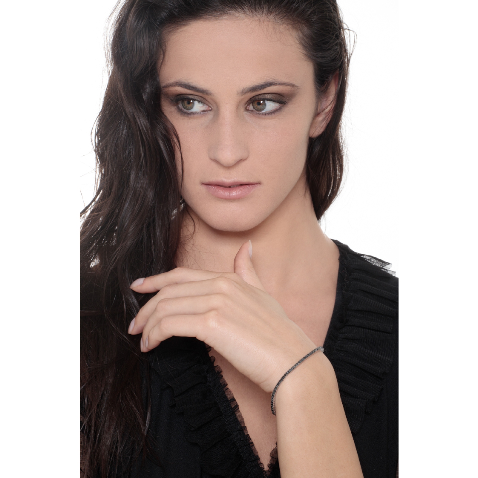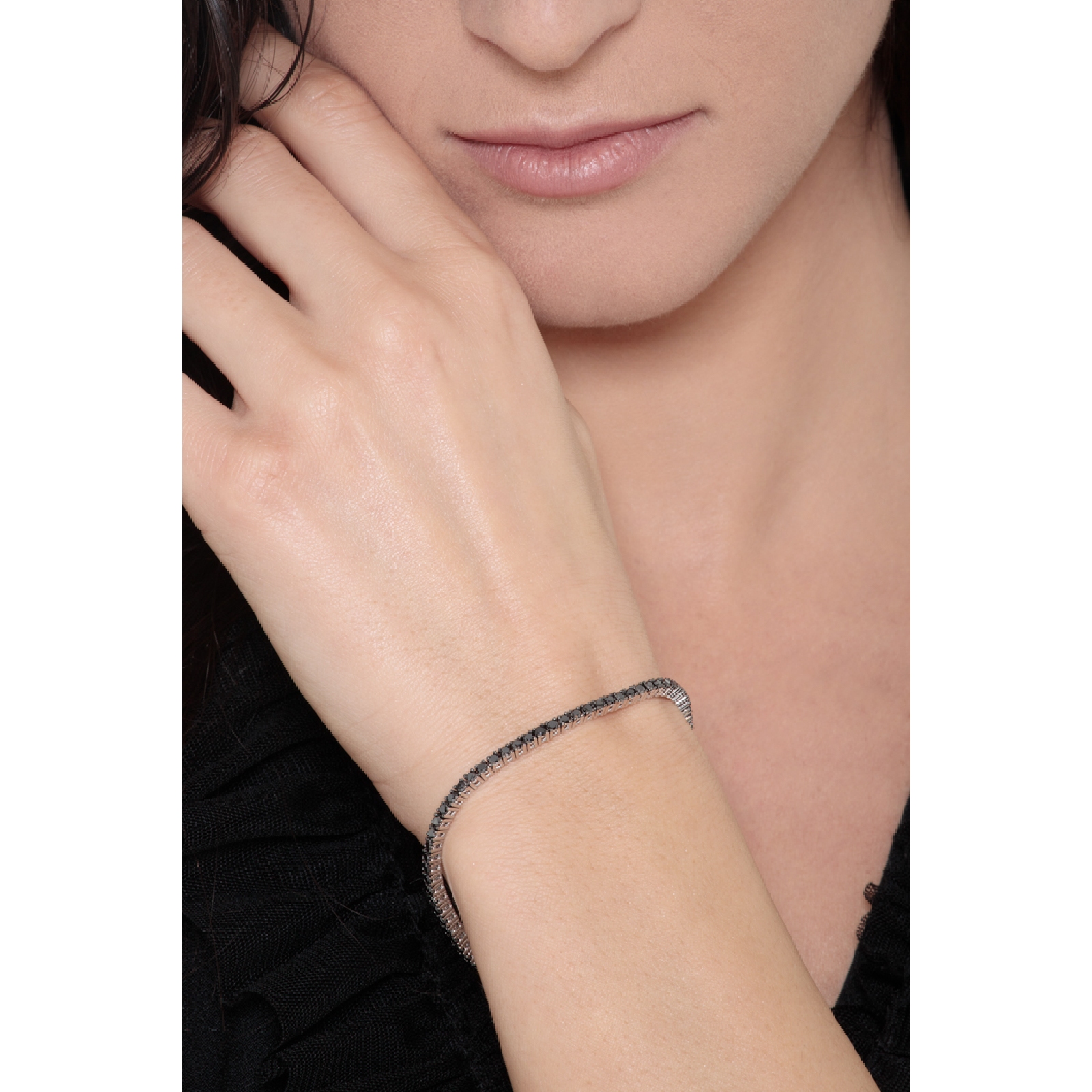 Bracelet Tennis en Or Blanc 18k et Diamants Noirs