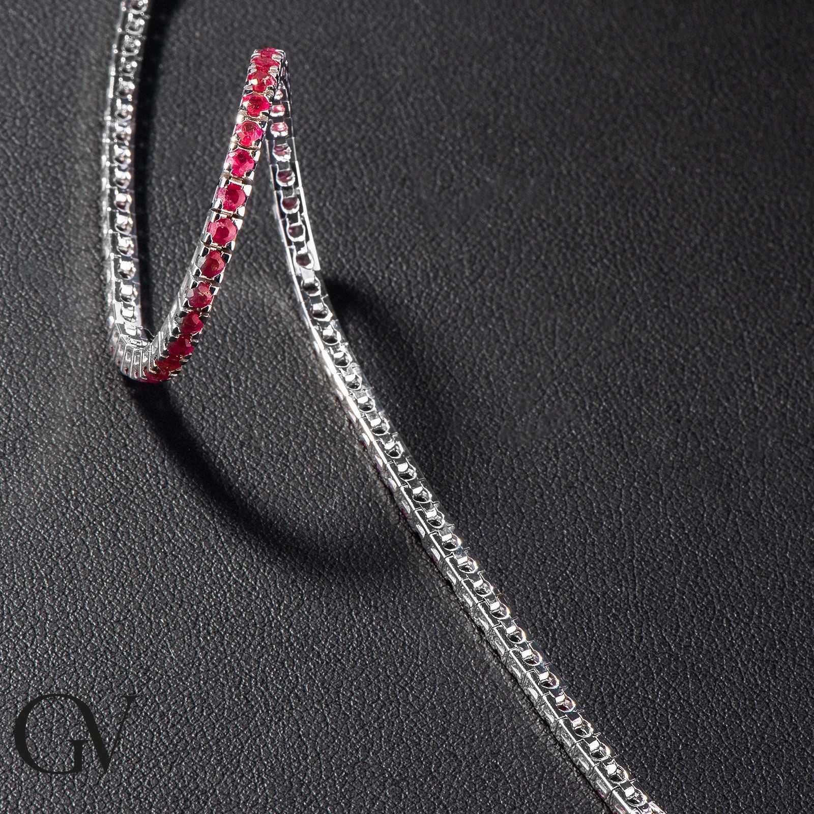 Bracelet Tennis en or blanc 18k serti de rubis taille brillant