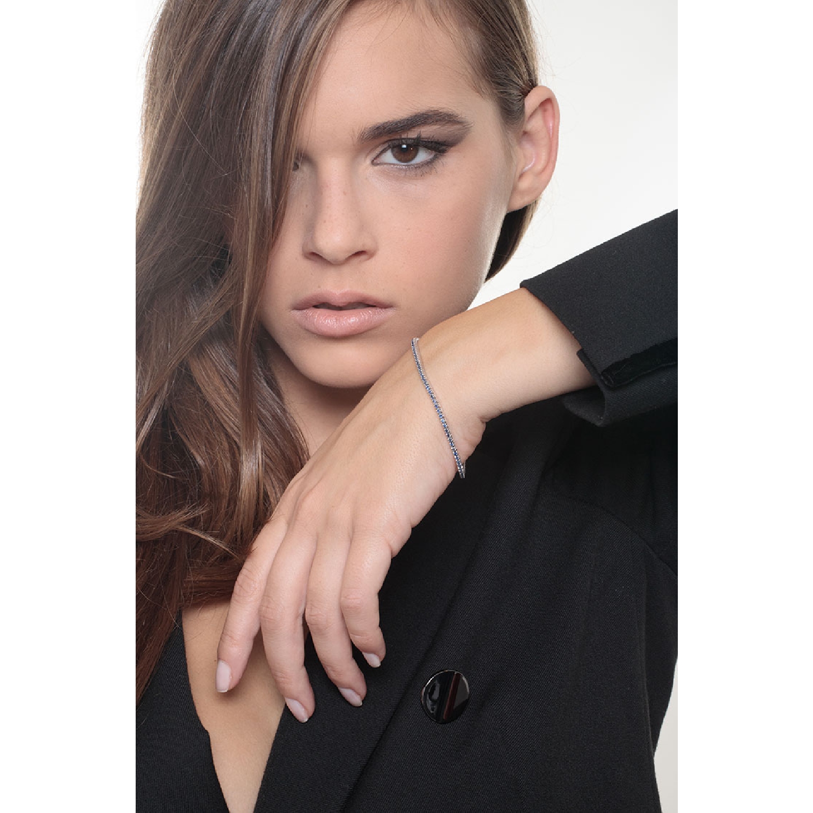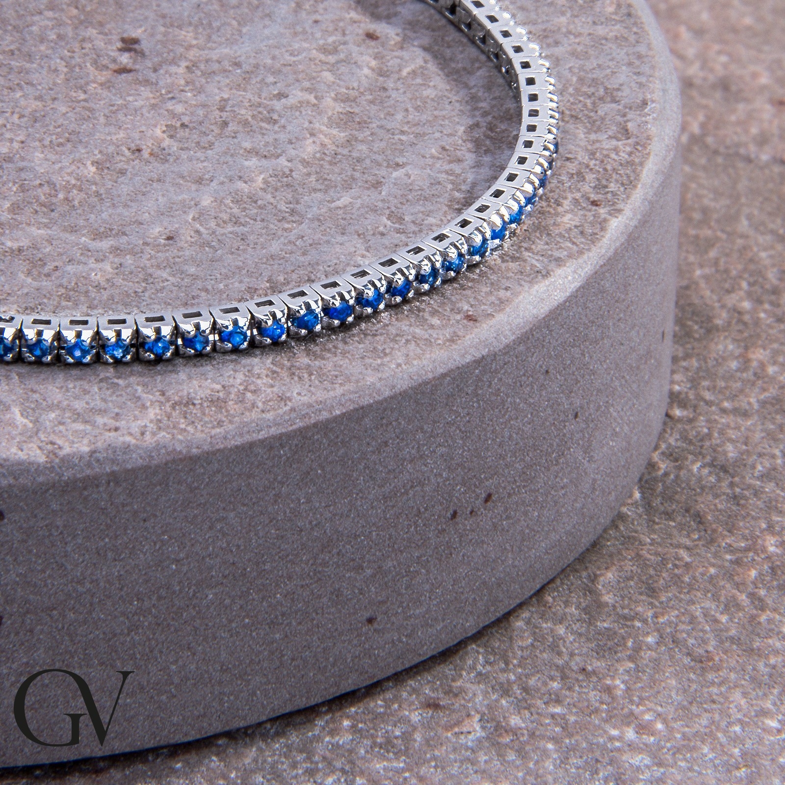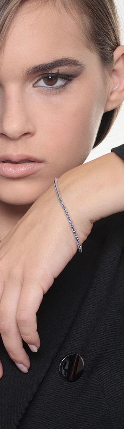 Bracelet tennis or blanc 18k avec saphirs bleus
