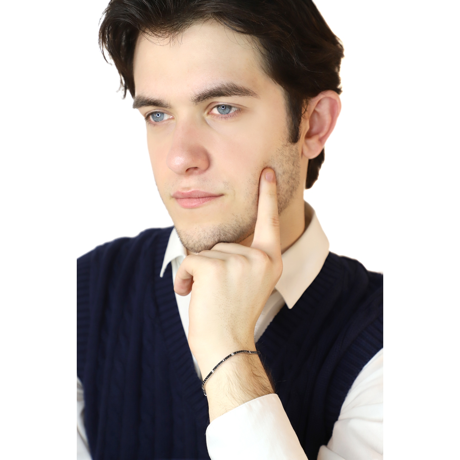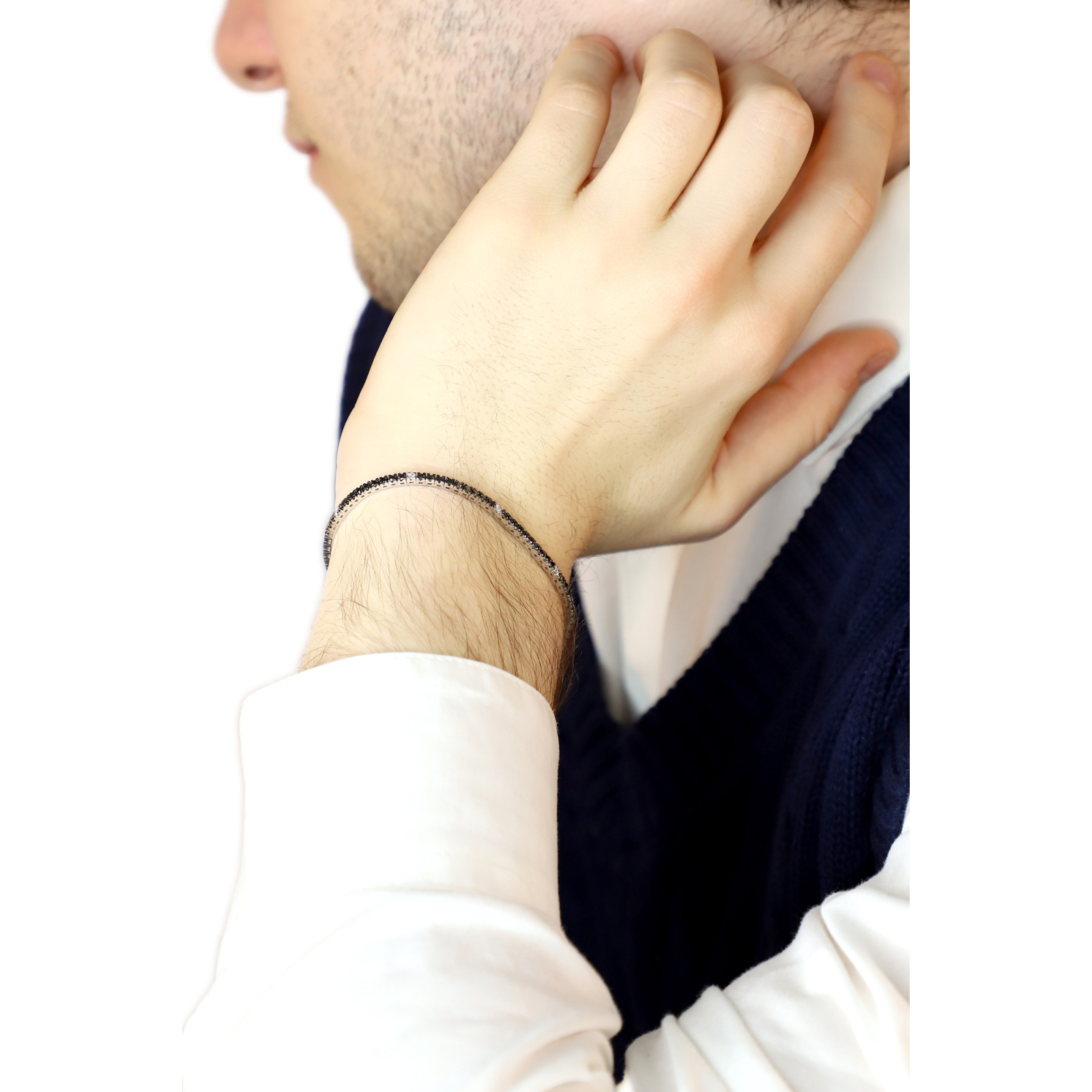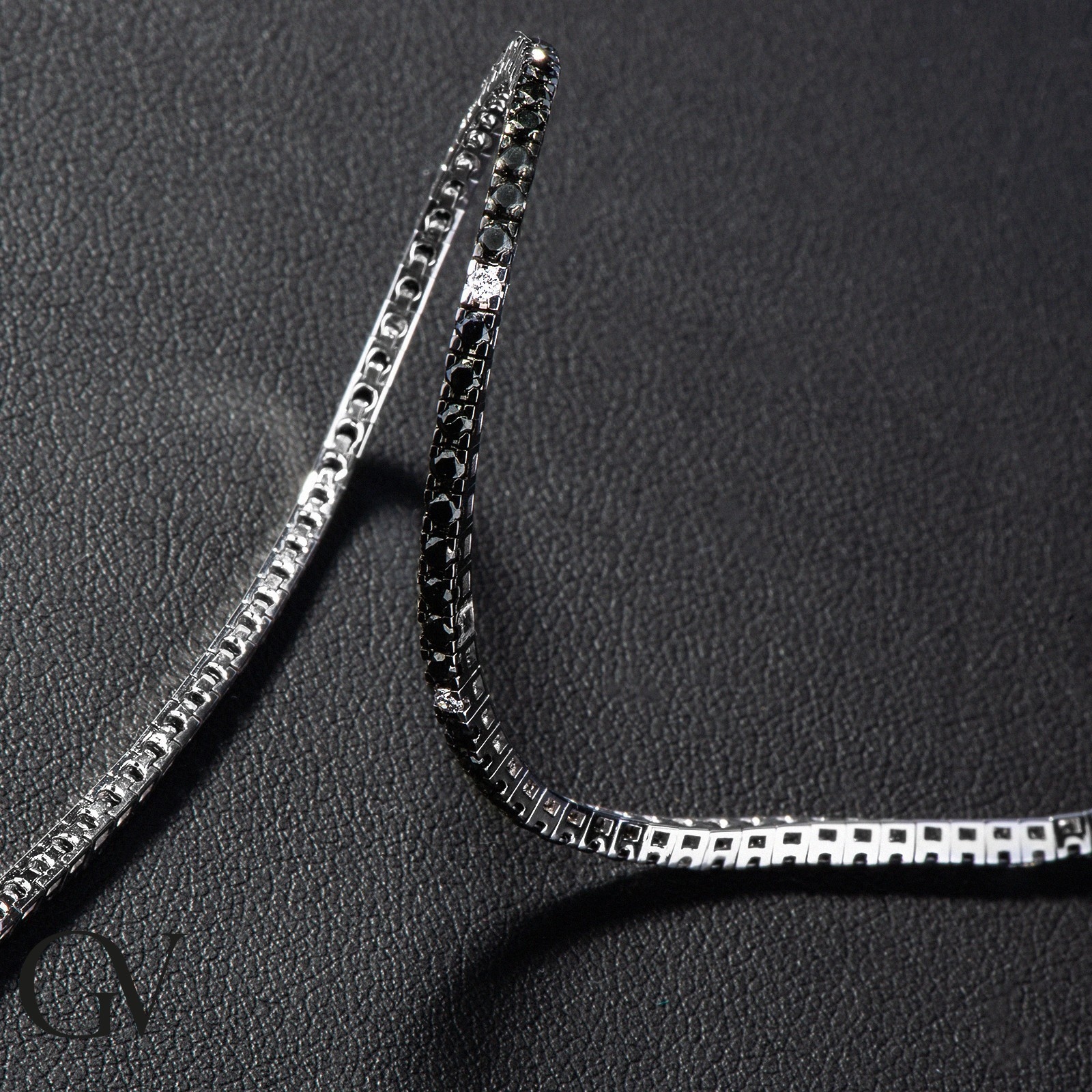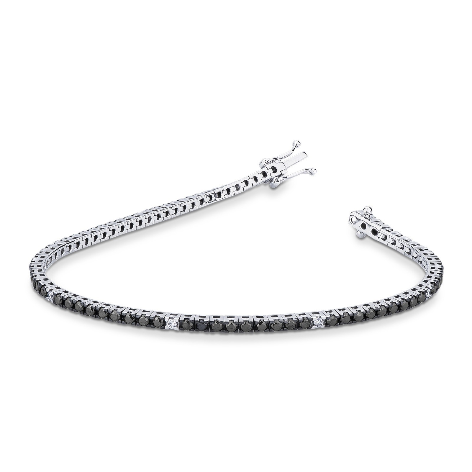Bracelet Tennis Or Blanc 750 avec Diamants Noirs et Blancs