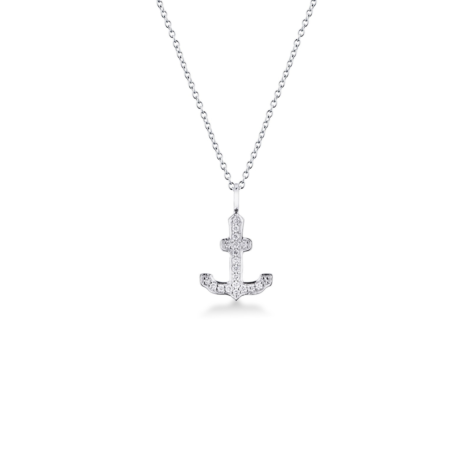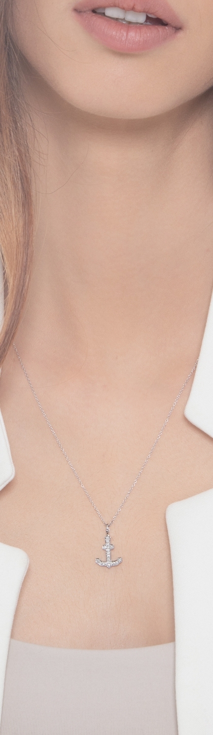 Collier or blanc 18k avec pendentif en forme d'ancre