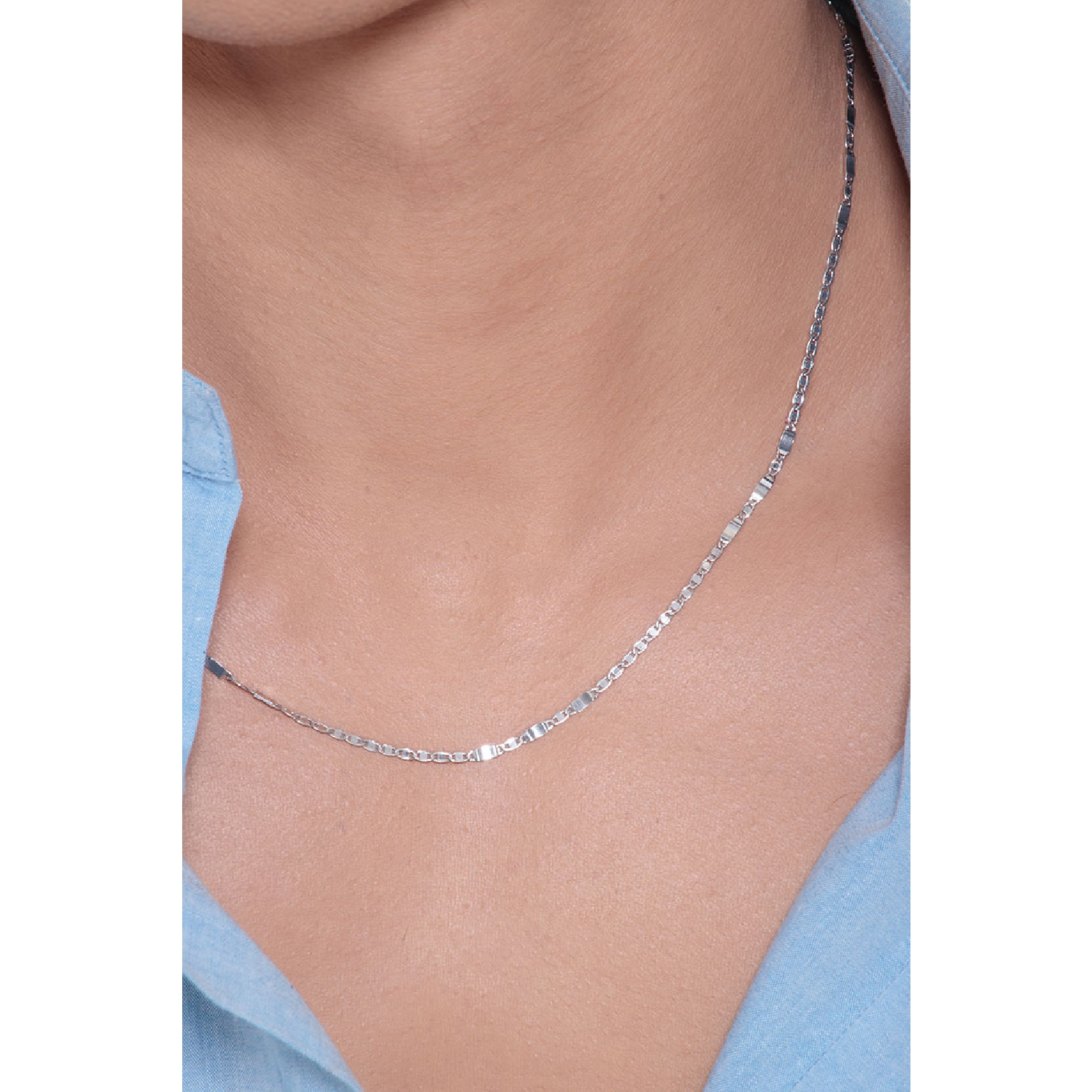 Chaîne plate en or blanc 18 carats, 50 cm