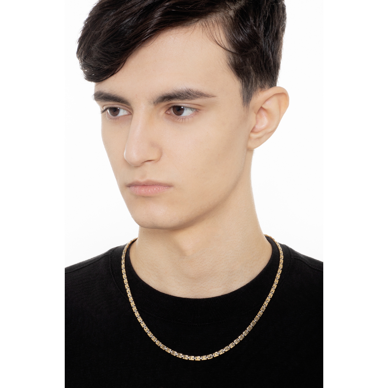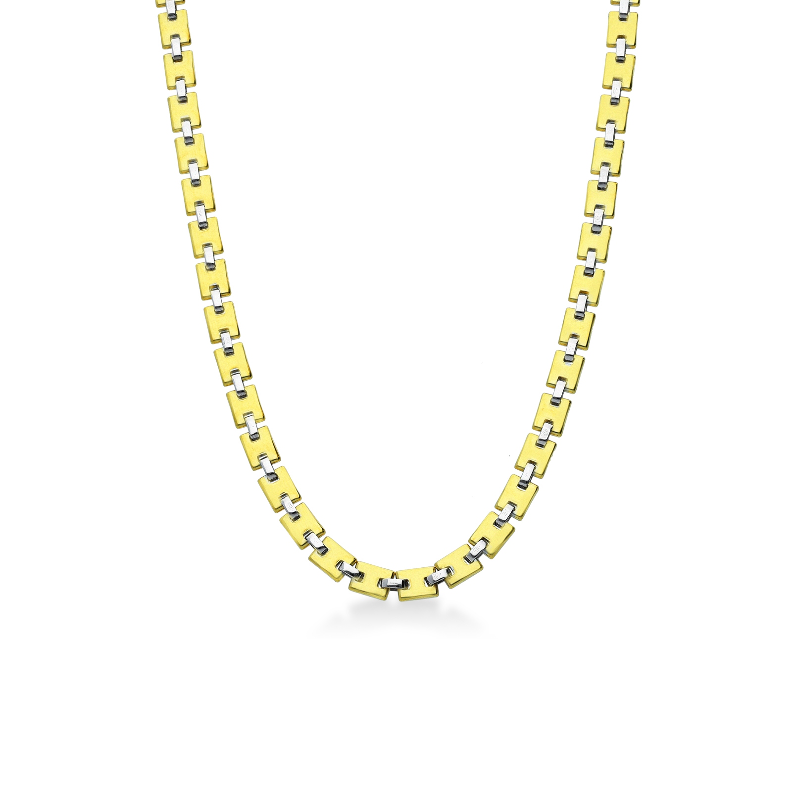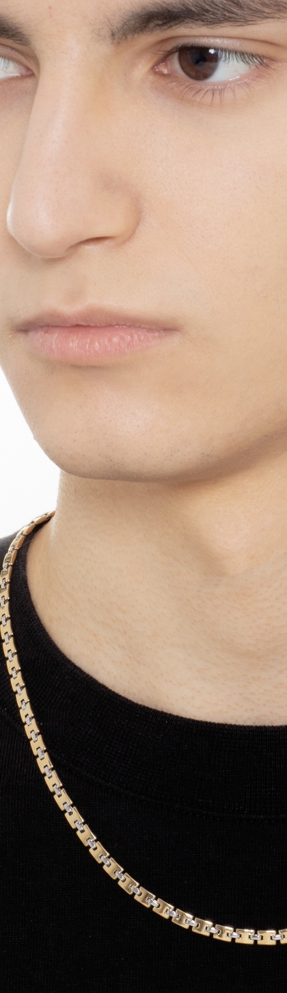Collier homme en or jaune et blanc à maillons carrés