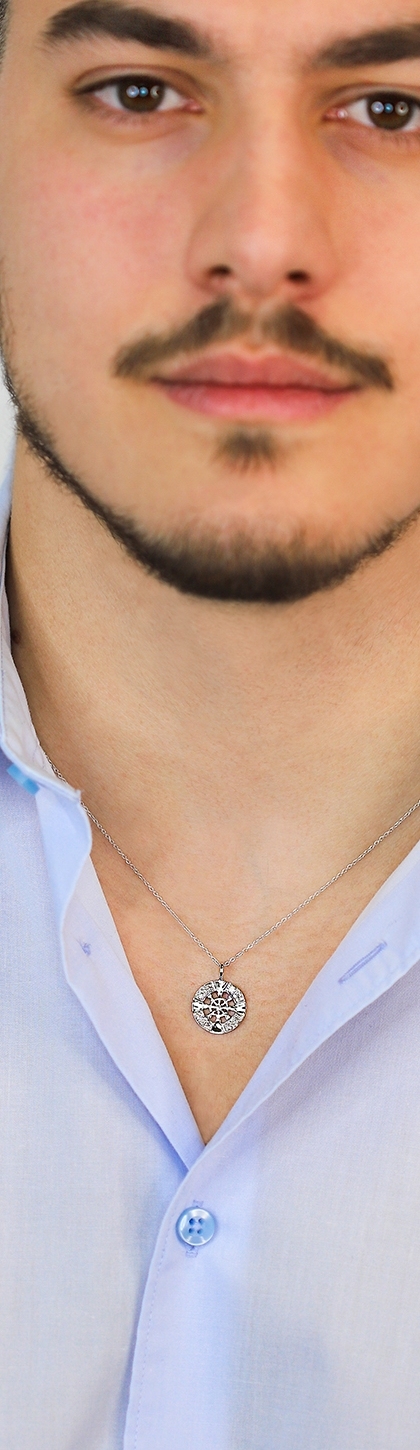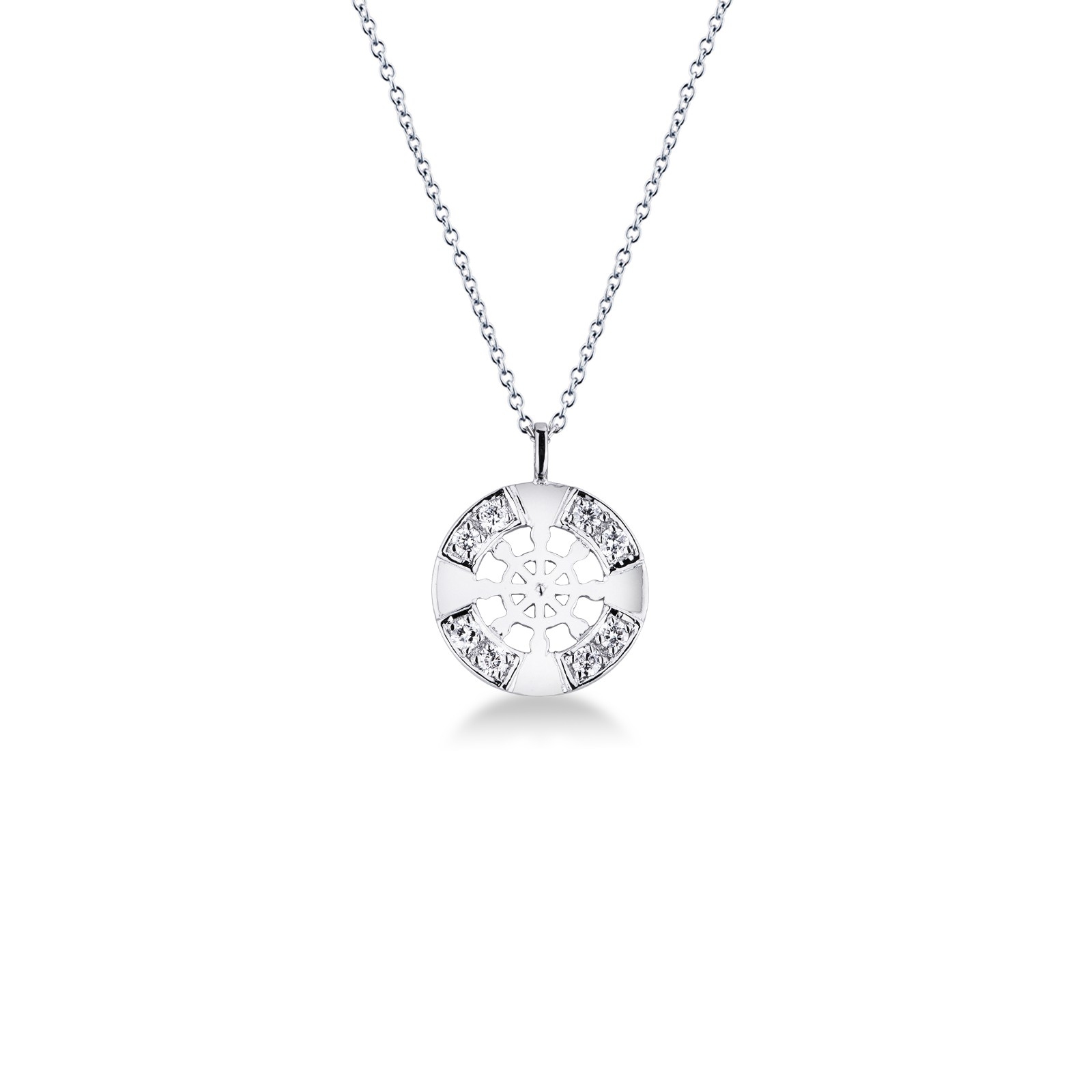 Collier en or blanc 18k avec pendentif en forme de gouvernail