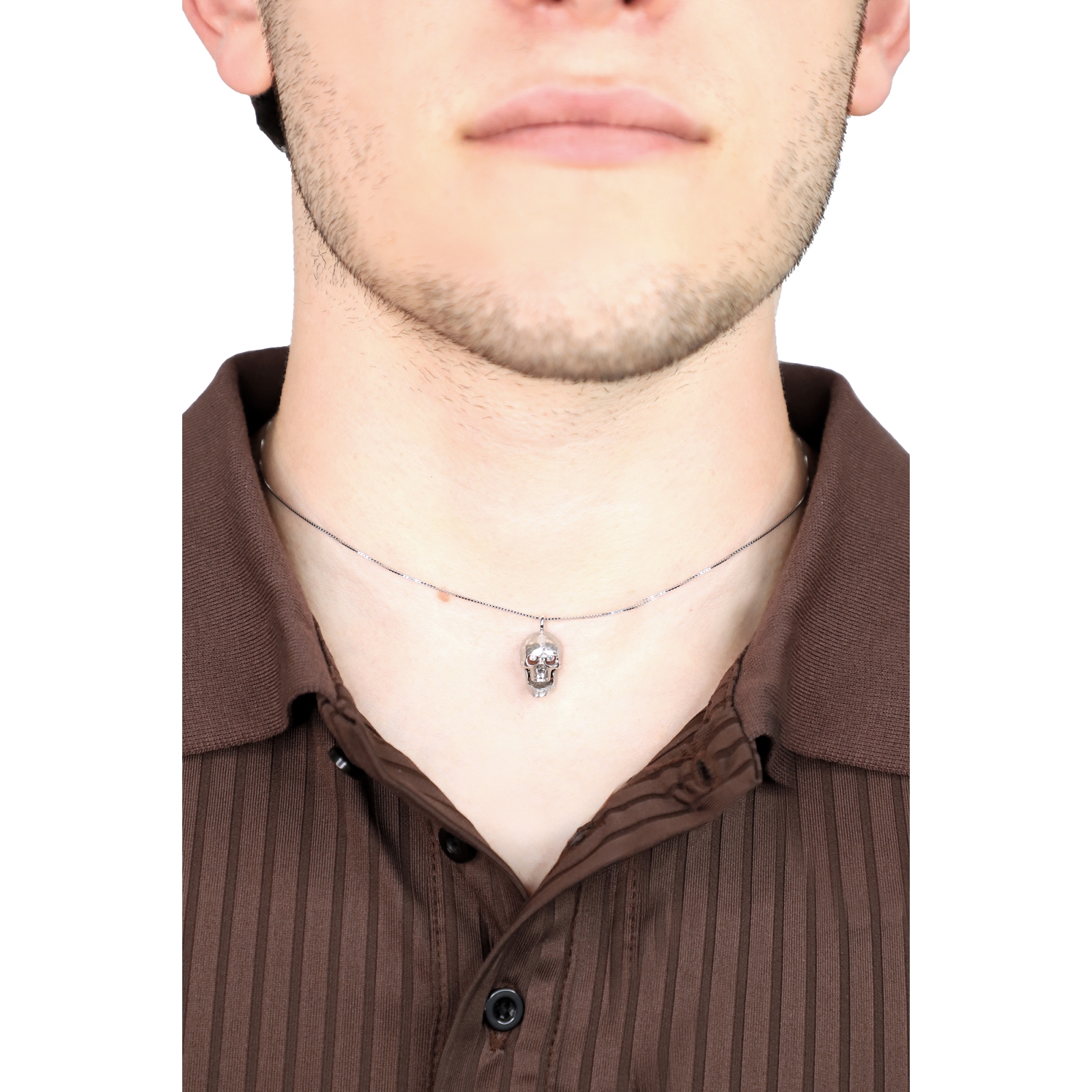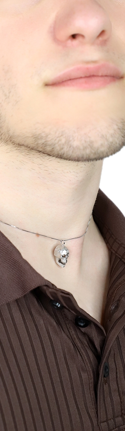 Collier en or blanc 18k avec pendentif skull et diamants