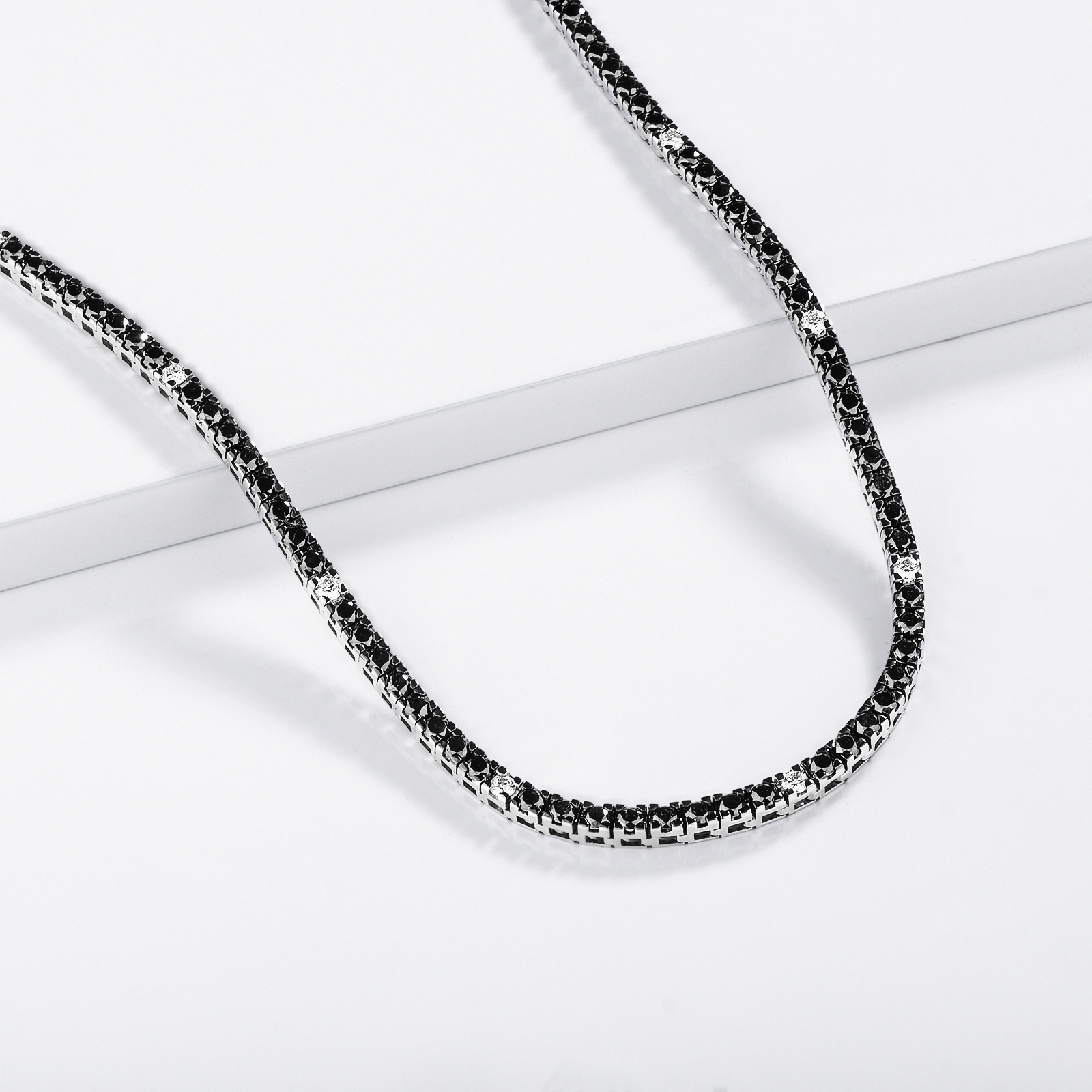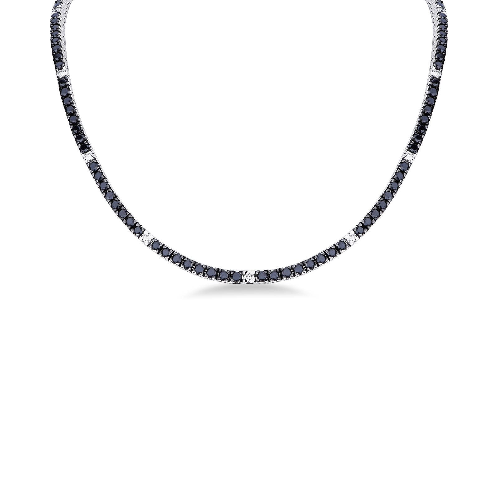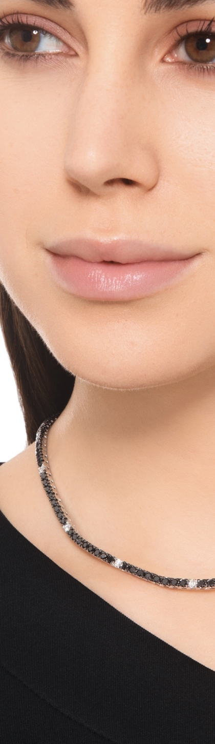 Collier tennis en diamants noirs et blancs or 750